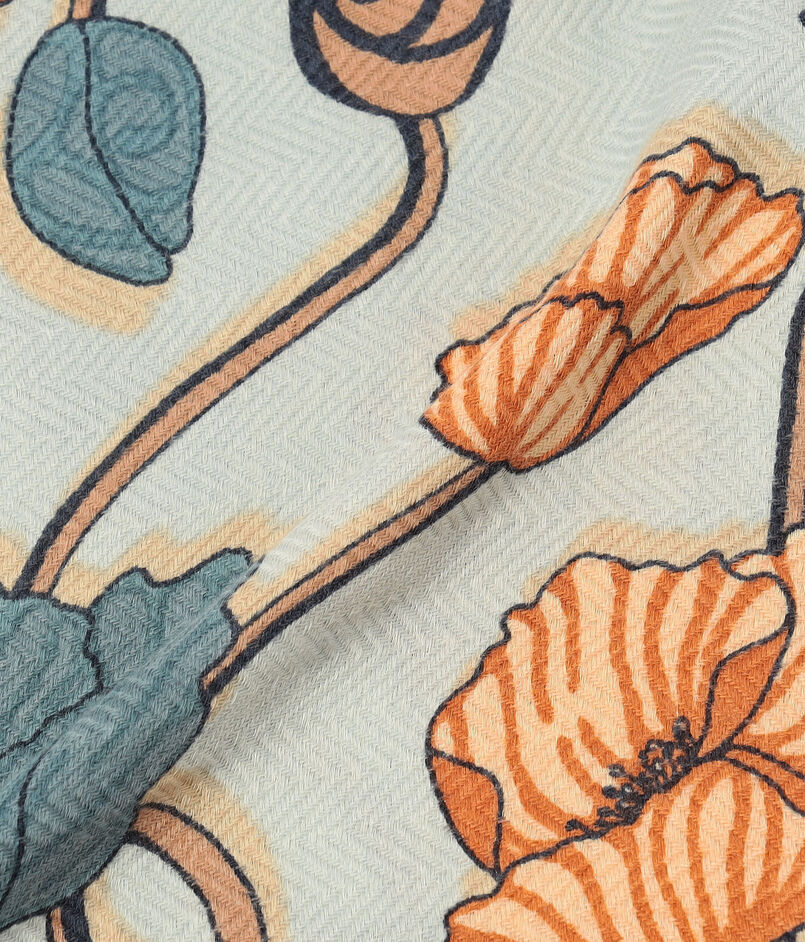 インド製のウール・シルクの特注生地を使用し、熟練の職人が1枚ずつ手捺染で丁寧に仕上げています。