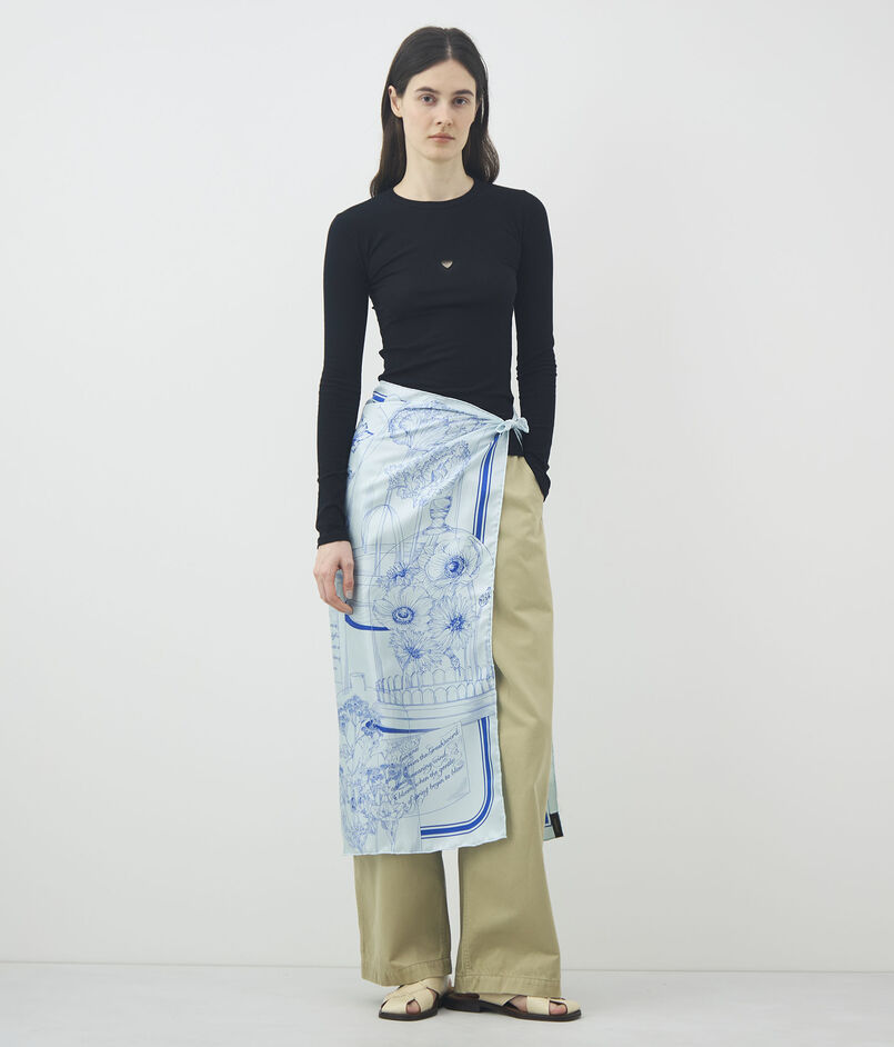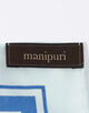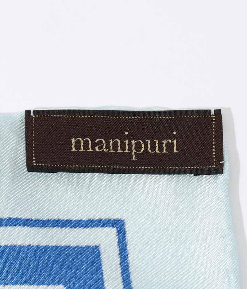 〈manipuri〉のスカーフは、日本の職人が一枚ずつ手捺染で丁寧に染め上げ、縁は手巻きで仕立てられています。