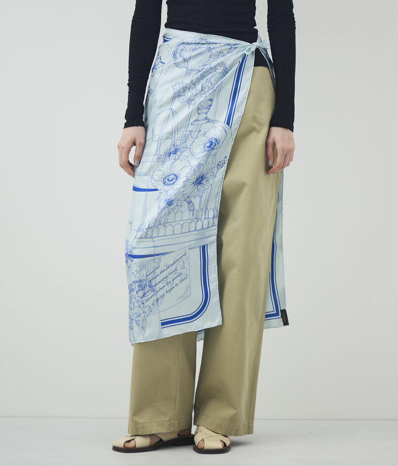 ヴィンテージスカーフからインスピレーションを得てつくられるスカーフやストールは、全て熟練の職人により一版ずつ手作業で丁寧に染め上げる手捺染(ハンドプリント)で作られています。