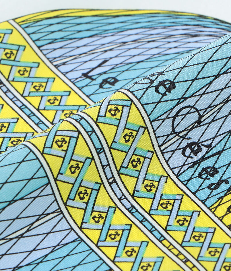 日本の職人が一枚ずつ丁寧に手捺染し、端は手巻きで仕上げるなど、細部にまで行き届いたものづくりも魅力です。