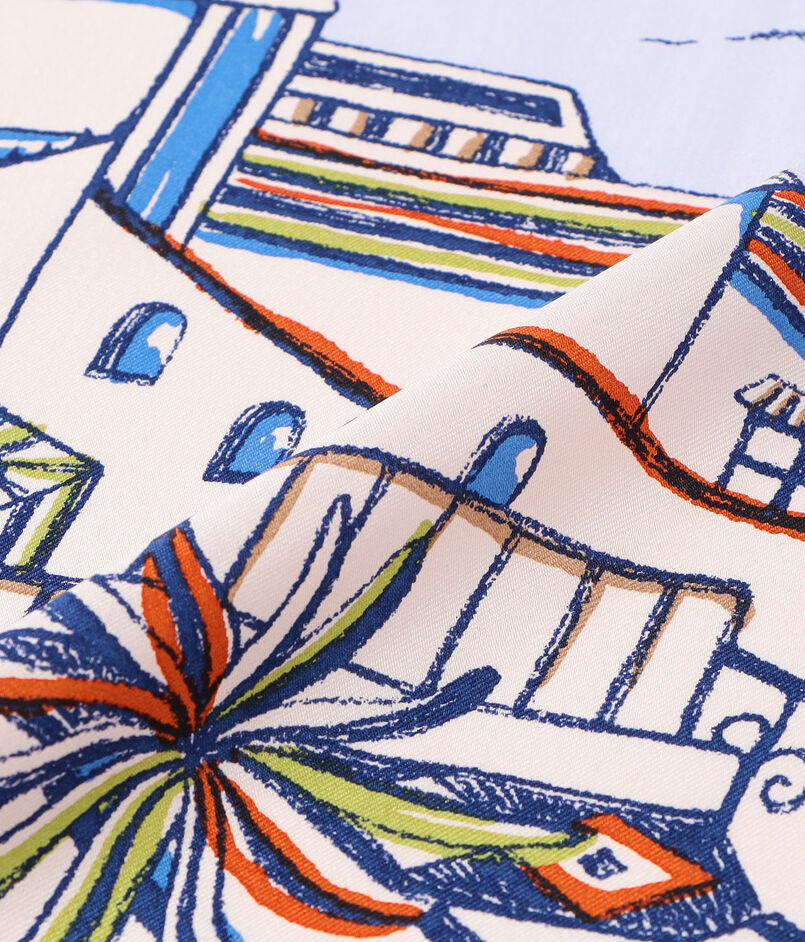 ヴィンテージスカーフからインスピレーションを得てつくられるスカーフやストールは、全て熟練の職人により一版ずつ手作業で丁寧に染め上げる手捺染(ハンドプリント)で作られています。