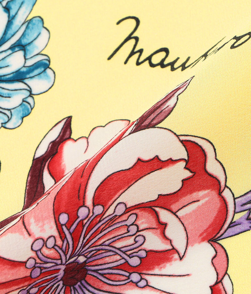 手つかずの自然が残る、『最後の楽園』として知られる島の名前がつけられた、〈MANTERO〉の季節の花柄アーカイブプリントをモダンに再解釈したスカーフ。