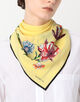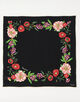 花のフレームがスカーフの輪郭に沿って配され、ミニマルなデザインながらも個性を放つ絶妙なバランスが魅力です。