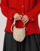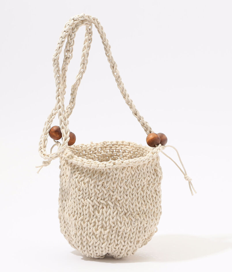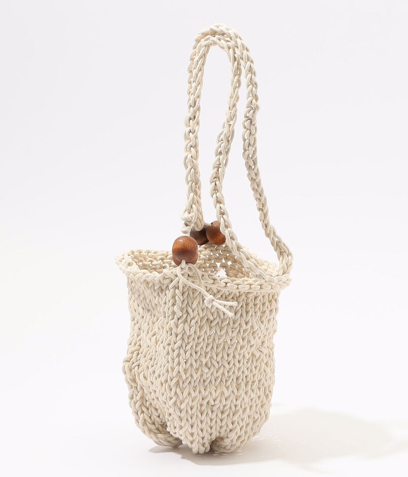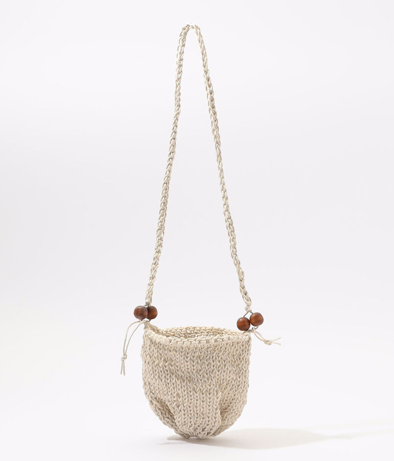 ワックス加工が施されたコットン糸で編まれたミニバッグ。