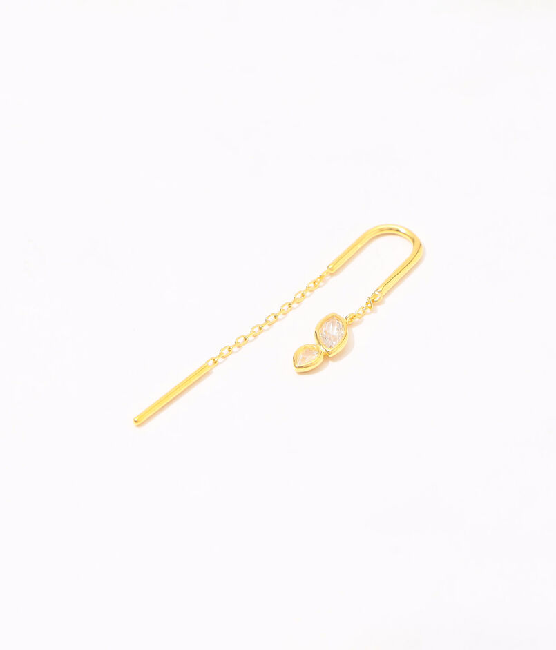 動くたびに揺れるゴールドチェーンとジルコニアの輝きがエレガントなピアス。