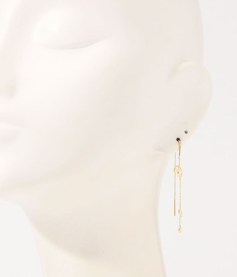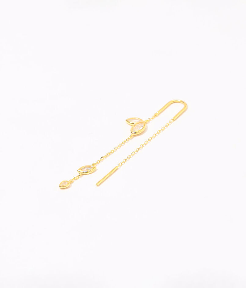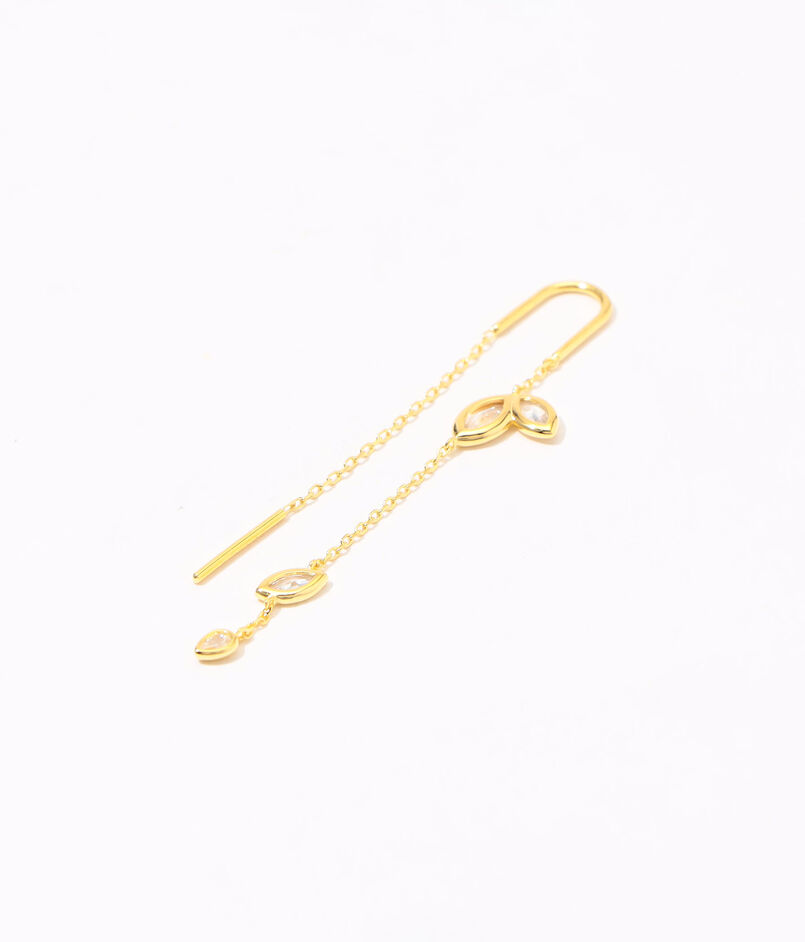 動くたびに揺れるゴールドチェーンと連なるジルコニアの輝きがエレガントなピアス。