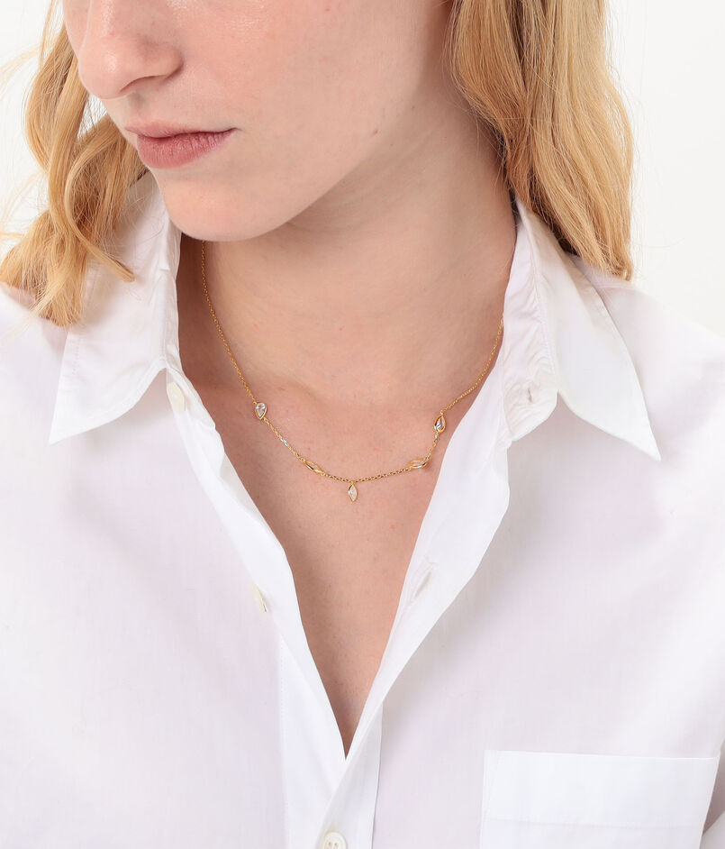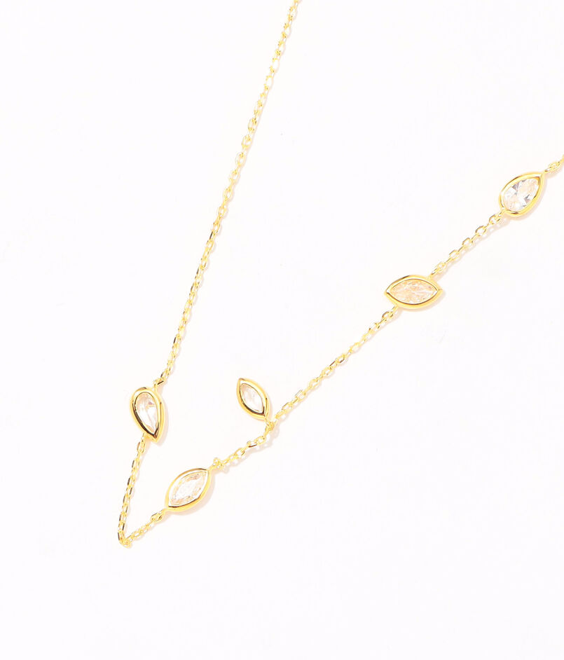 マーキスカットとペアカットのホワイトジルコニアが美しく配置されたネックレス。