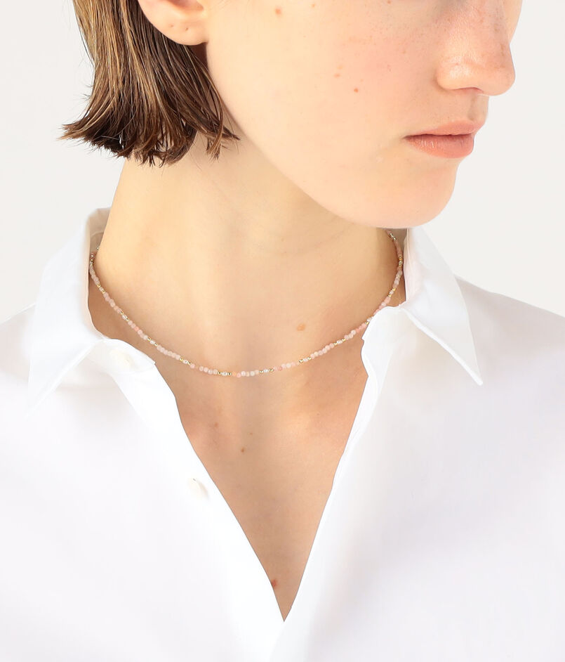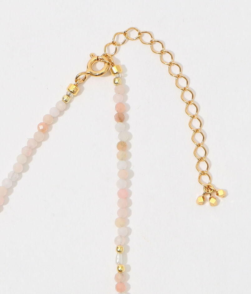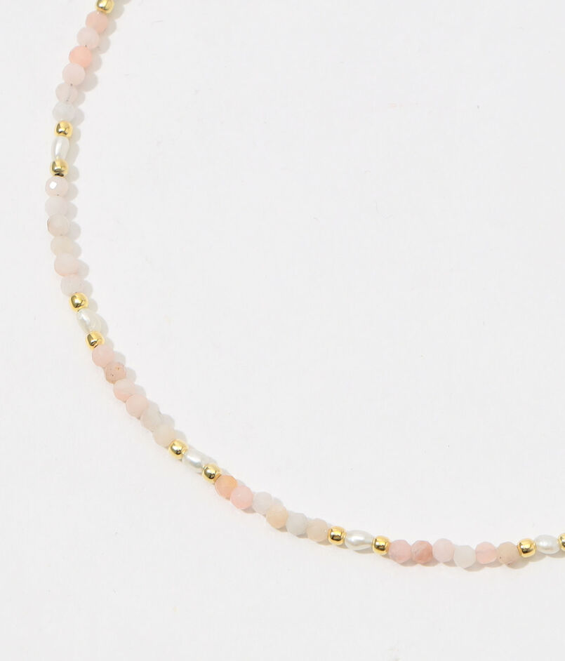 華奢なネックレ スは、女性の美意識を高めて内面の魅力を引き出してくれるといわれる、可憐な色合いが美しいピンクオパールと品のある光沢のパールが織りなす優美な魅力あふれる一品です。