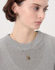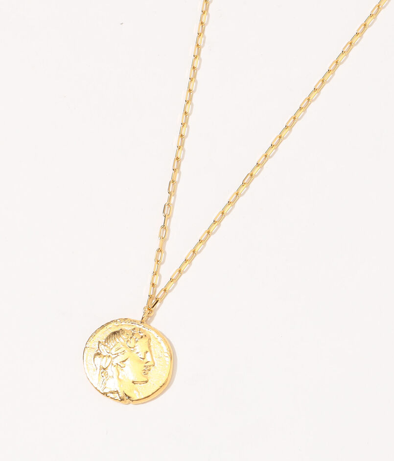 深みのあるコインモチーフの魅力をさらに引き立て、美しい輝きを与えるデザインチェーンを組み合わせて、胸元に飾る小さなアートのようなジュエリーに仕上げられています。
