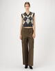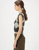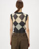クラシックなアーガイル柄をモダンにアレンジし、レイヤードスタイルのアクセントに最適です。