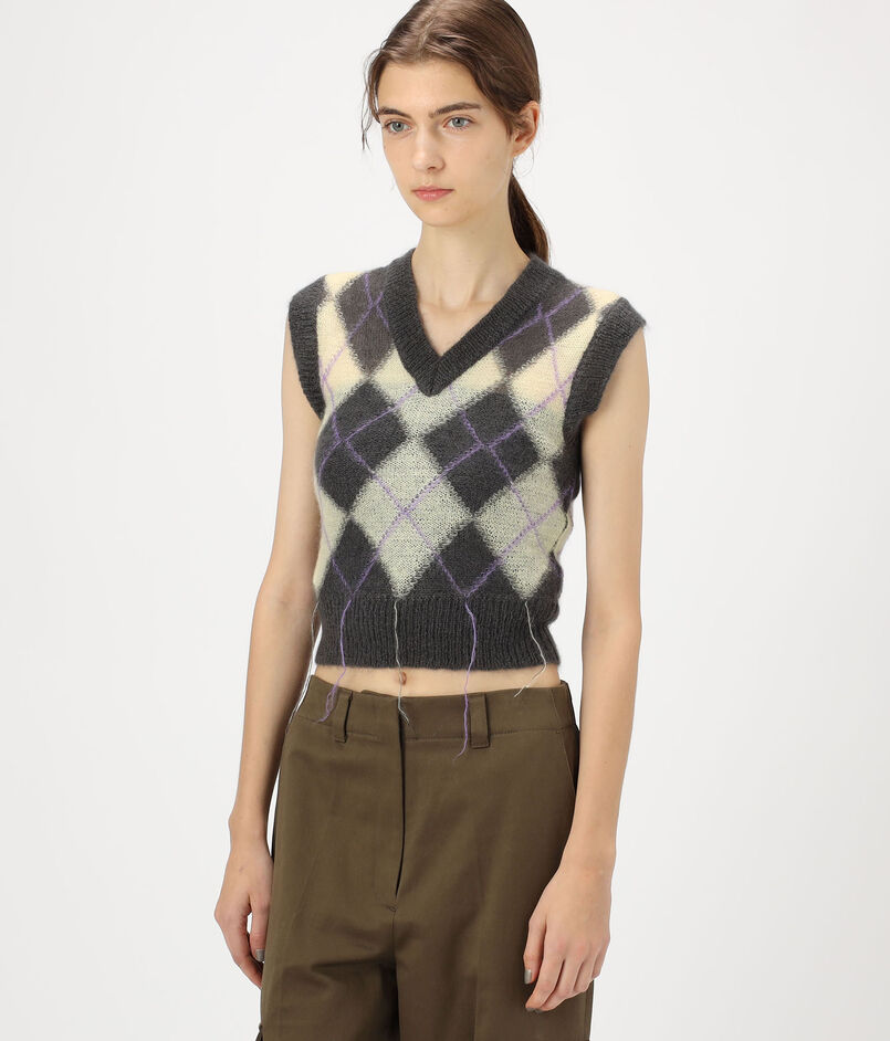 ウール素材の柔らかなニットで仕立てたアーガイル柄ベスト。