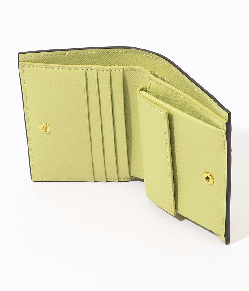 上質なサフィアーノレザーを使用した、スナップボタン付きの二つ折りウォレット。
