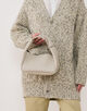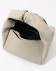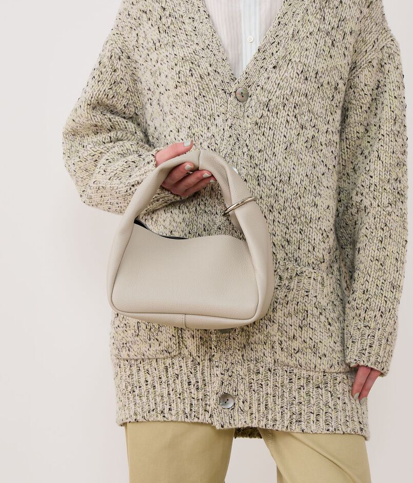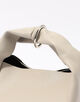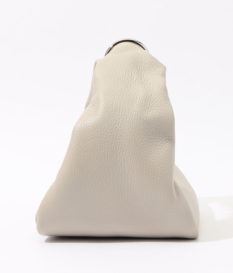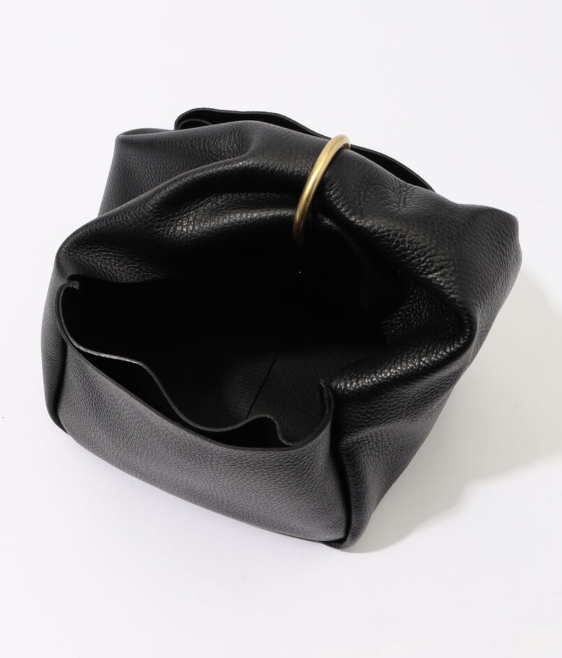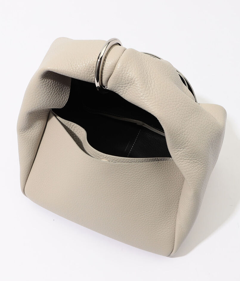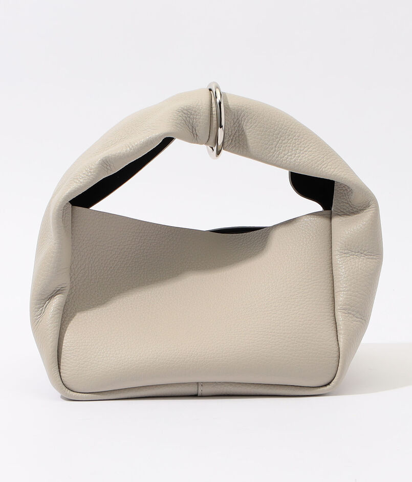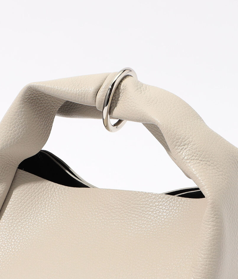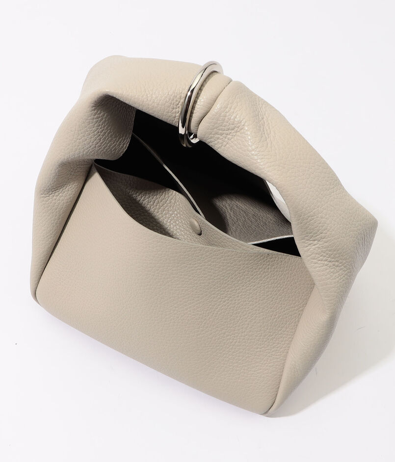 裁断・縫製を極めてシンプルにし、かつリング金具を通すことでユニークで立体的なフォルムが生み出されています。
