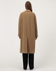 ボリュームの使い方が美しく身体の曲線に沿ったフォルムは、幾何学的かつ造形的(彫刻的)で美術学校で学んだデザイナーの背景をうかがわせる。