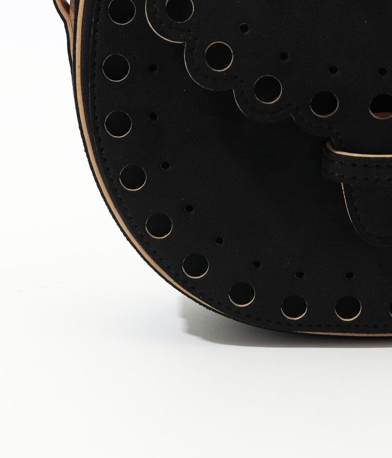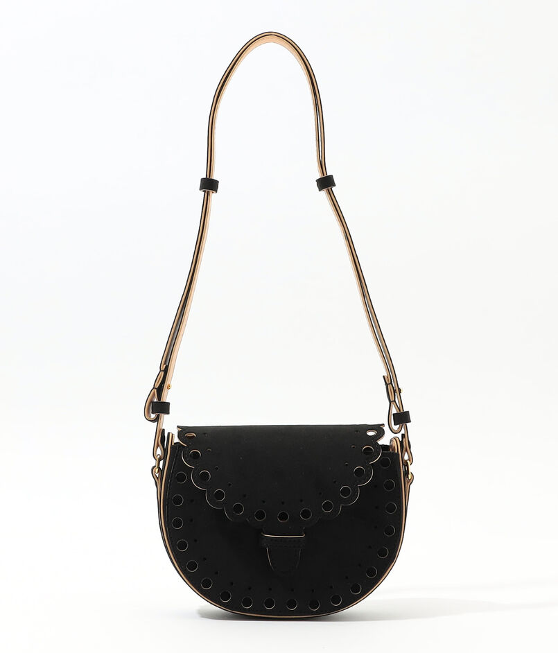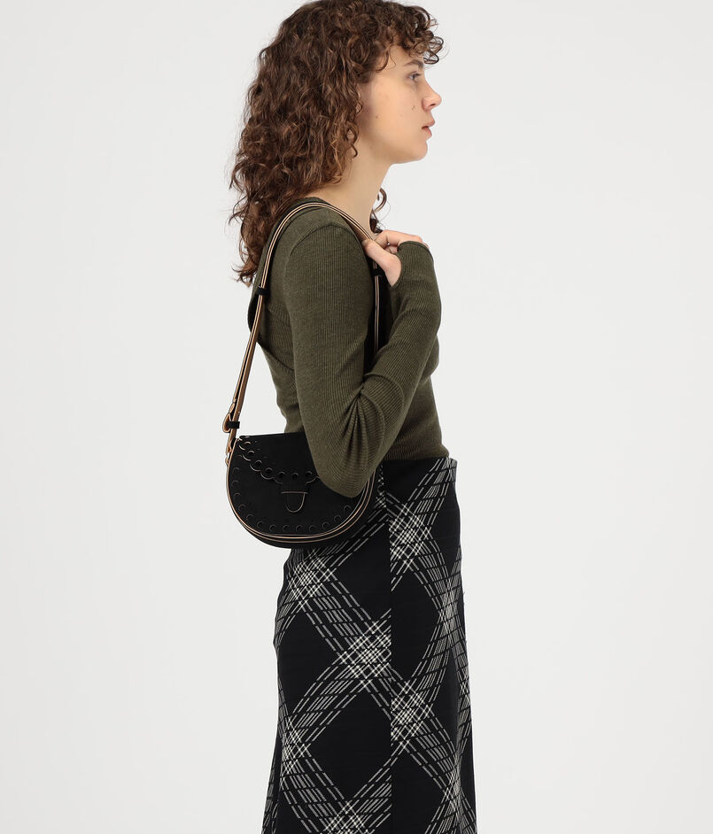 円の連鎖が特徴のあるデザインで日本のミニマリズムの美学から生まれたデザインのミニバッグ。
