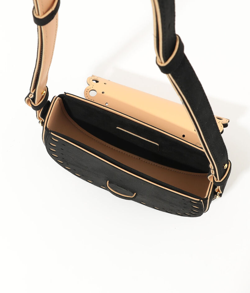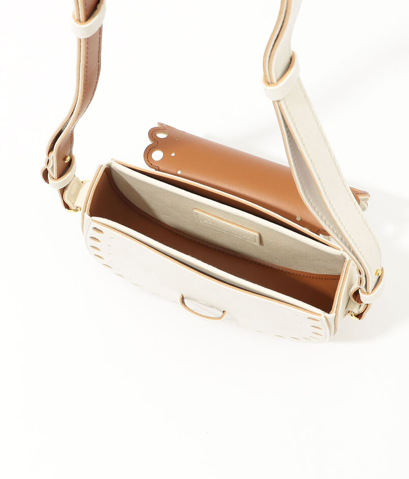 フラップの先が マグネット付き仕様になったショルダーバッグは開閉がとてもスムーズ。