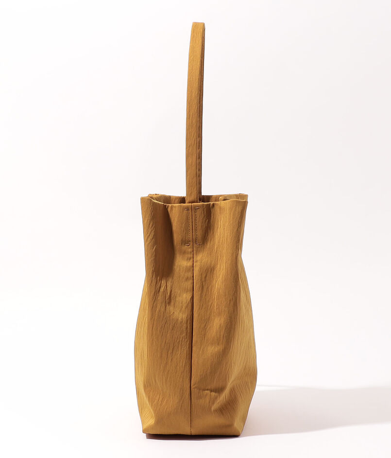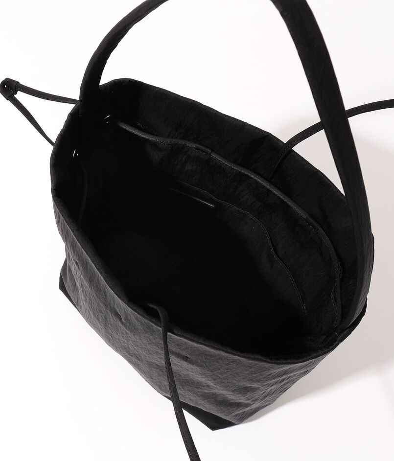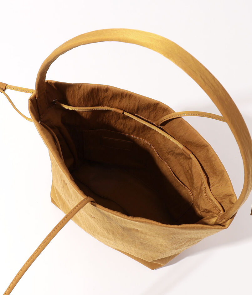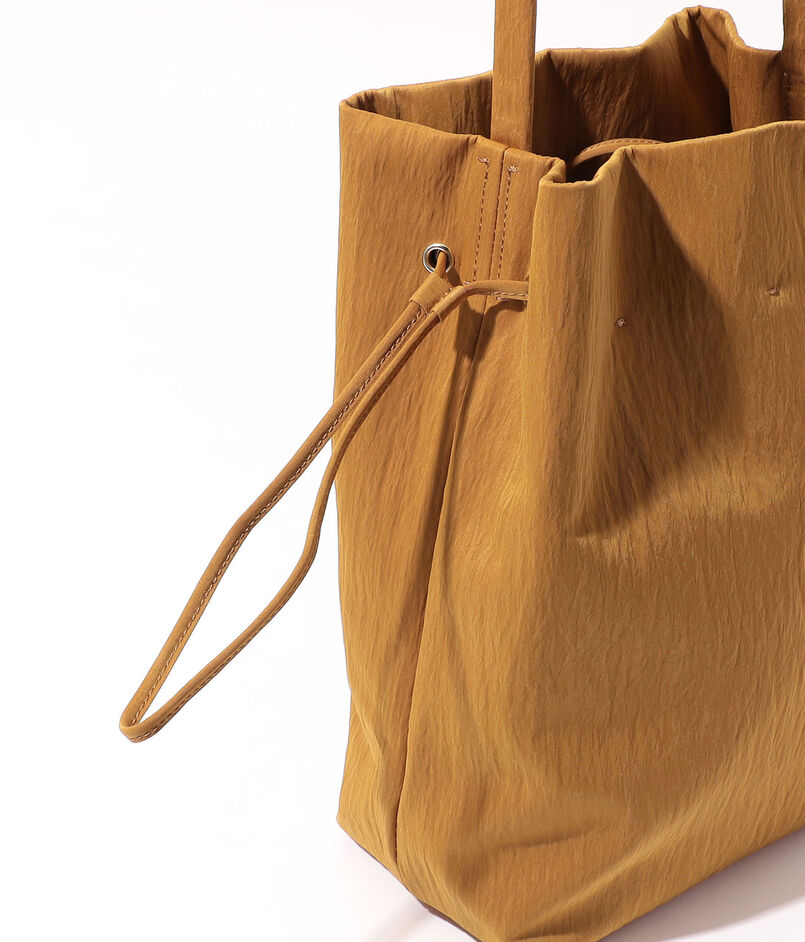 巾着型の広い間口は、開けた状態でトートバッグ、絞った状態で巾着バッグと2way仕様で様々なシーンでの活用が楽しめるのも魅力的。軽量で持ちやすく、デイリーユースに最適なバッグです。