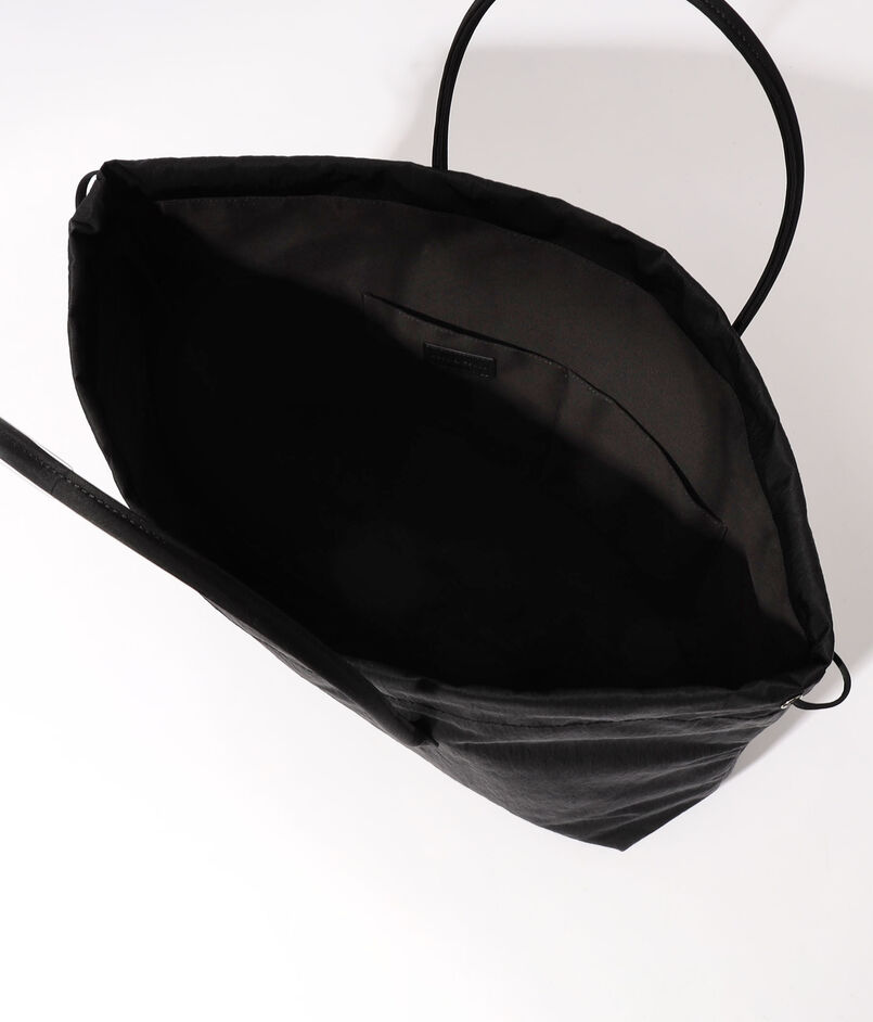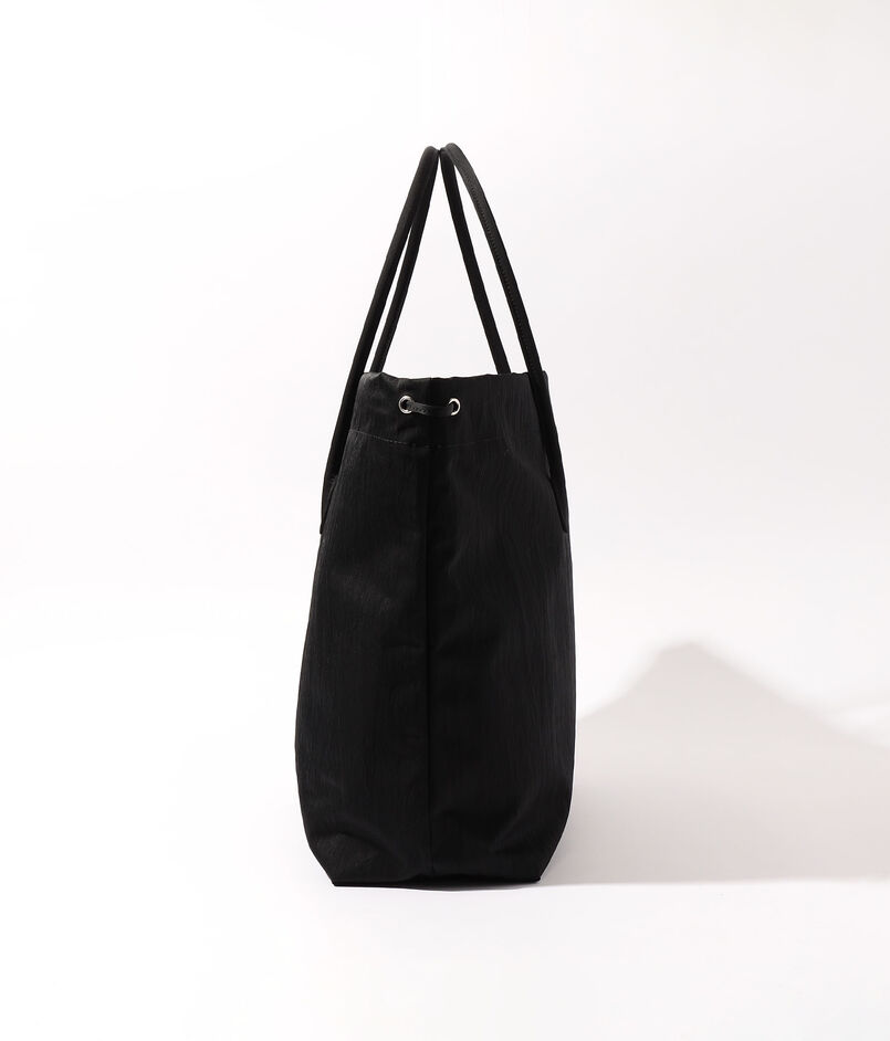 サイドの紐を絞れば巾着トートバッグとしても使用でき、開口部は必要なだけ大きく開けることができるため使い勝手も抜群。
