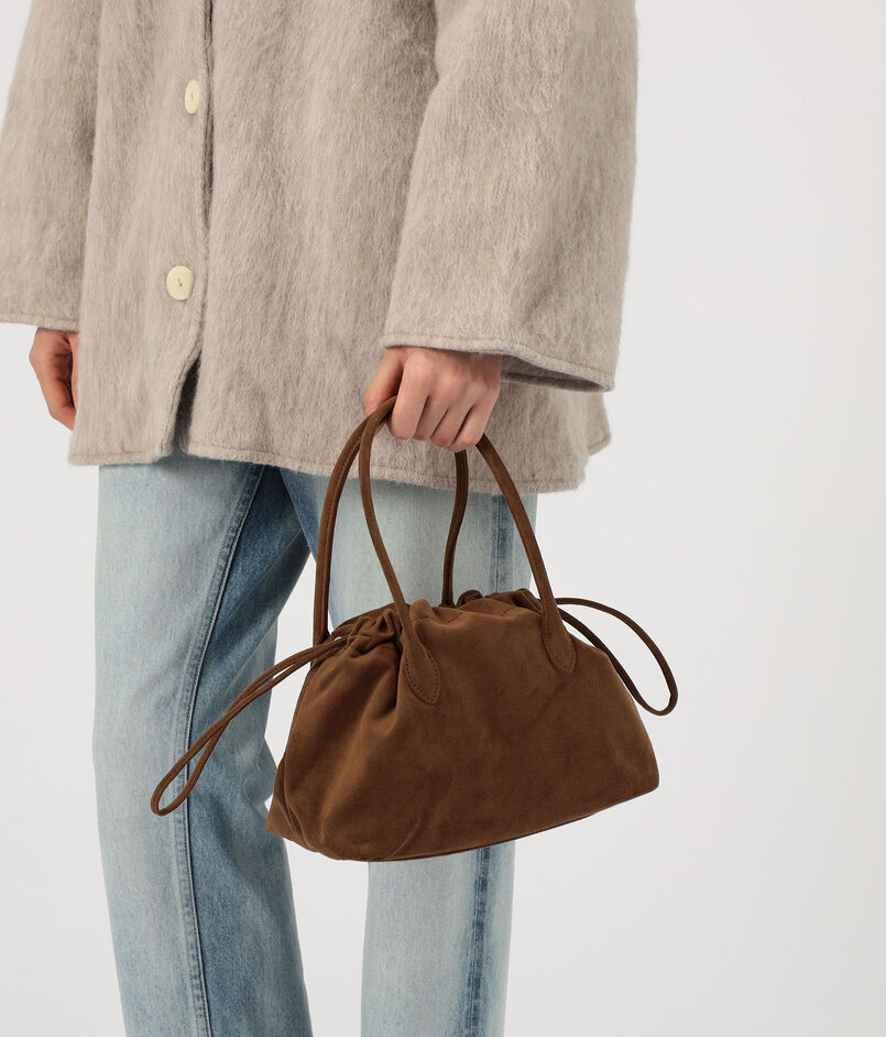 巾着を閉めた時のドレープの表情を最大限に生かしたハンドバッグ。