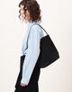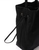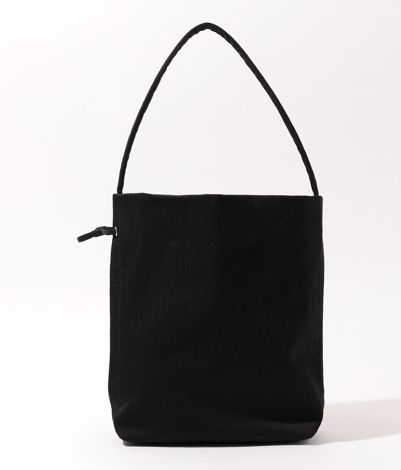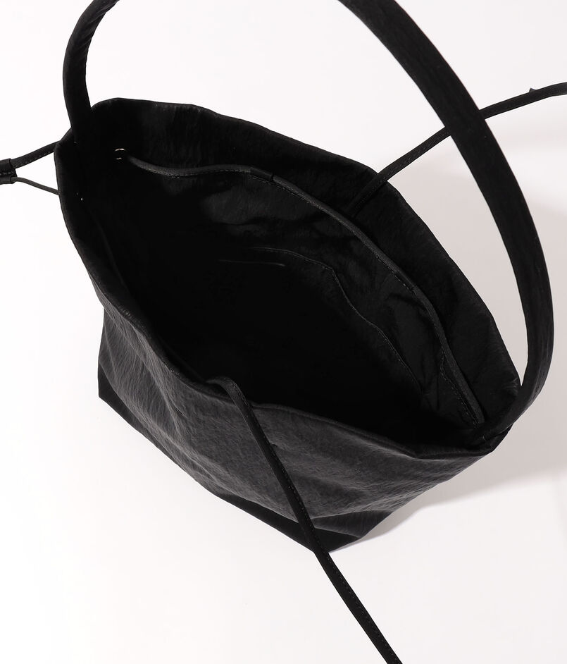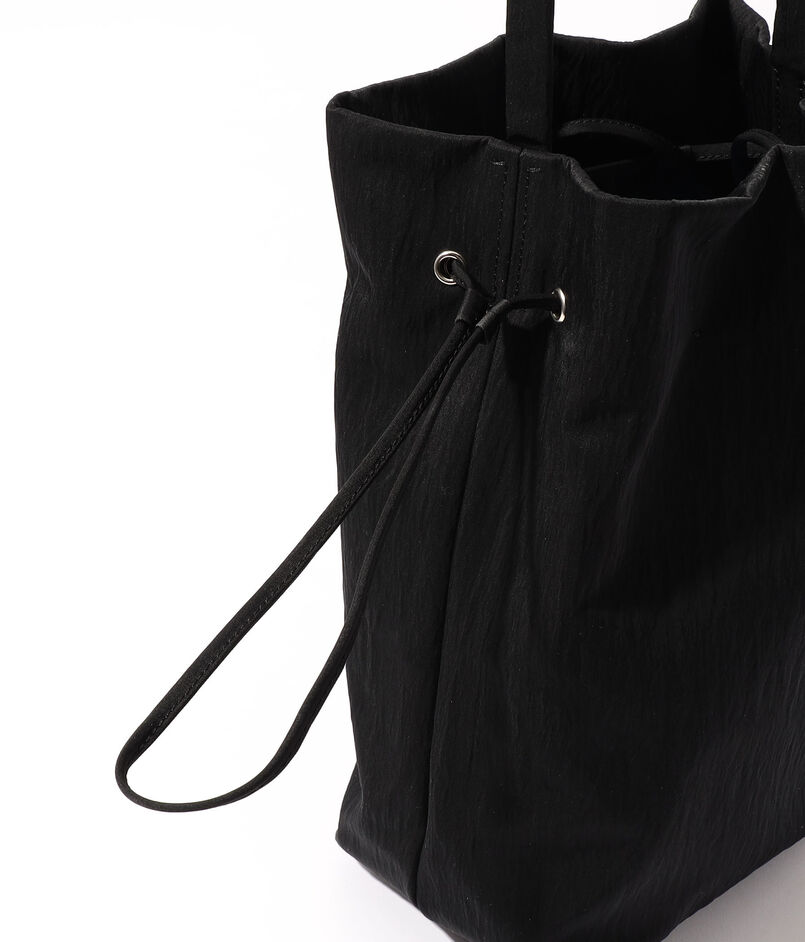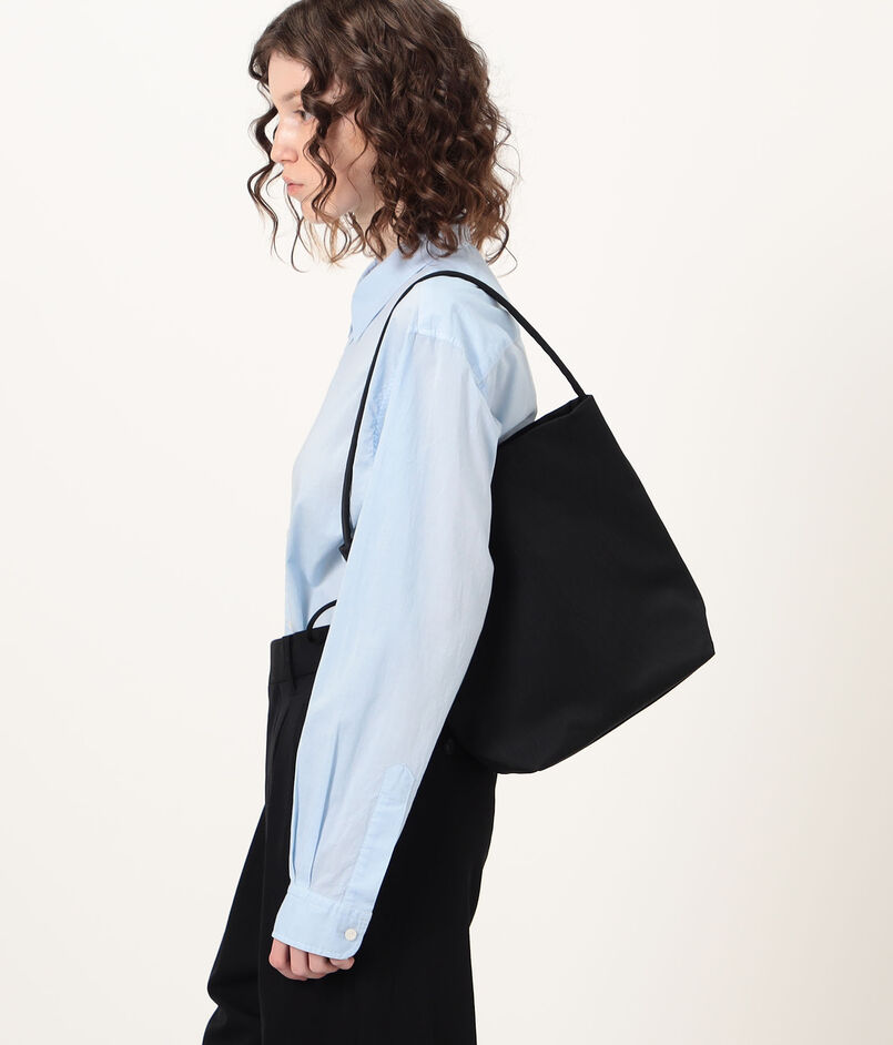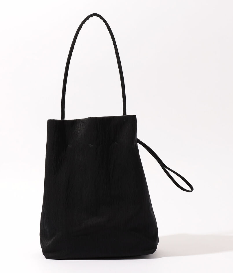 巾着型の広い間口は、絞り加減でトートと巾着の2wayシルエットを愉しめる独創的な設計。