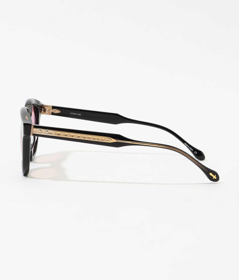 掛けた際の横顔を華やかに演出する芯金、フロント上部とテンプルエンドにあしらわれた象徴的なパーツなど、随所にブランドのアイデンティティーと職人の技術が感じられます。