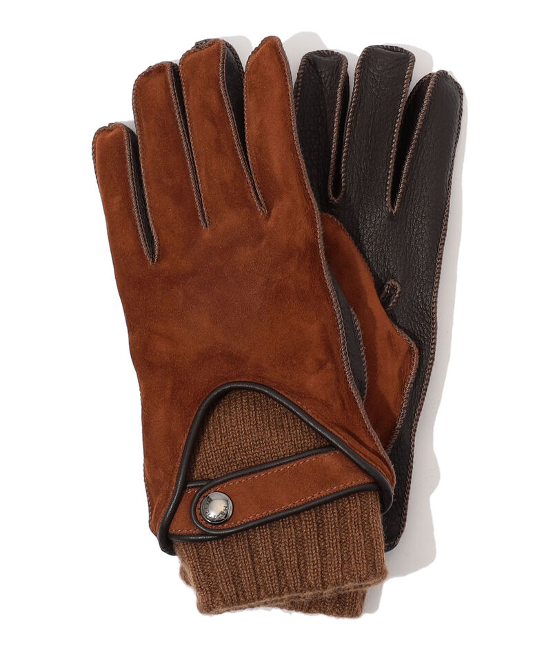 MAZZOLENI カシミヤライニング ラムスキンヌバック×ディアスキンコンビグローブ