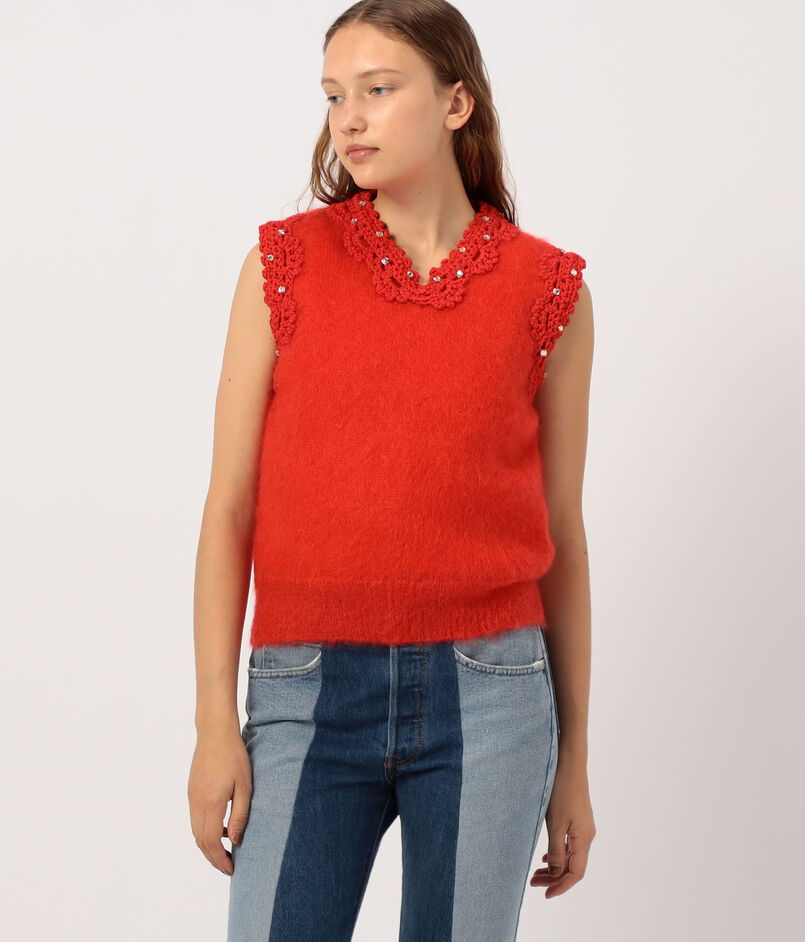 MERYLL ROGGE PADDED VEST W/CROCHE パディットクロシェニットベスト