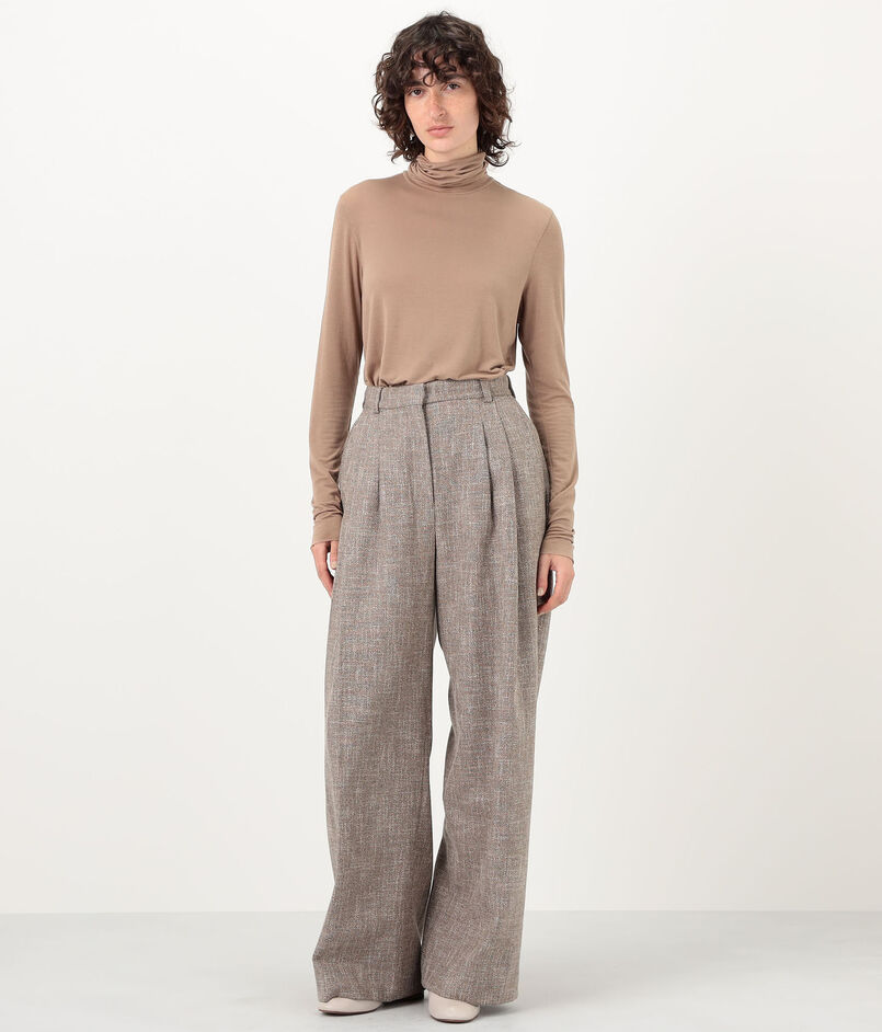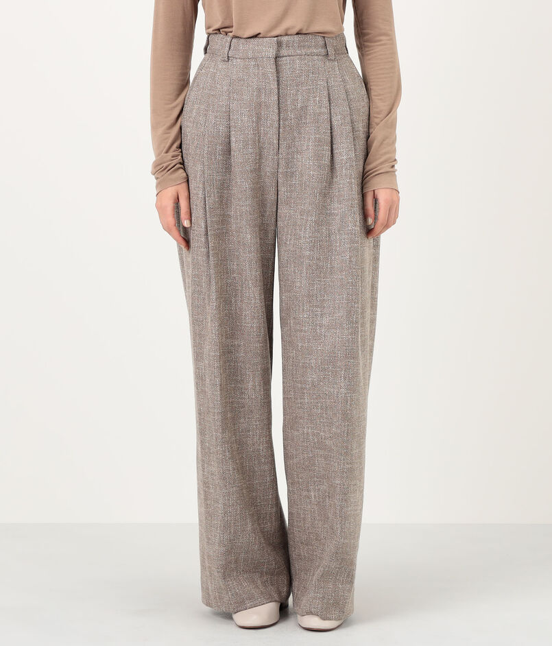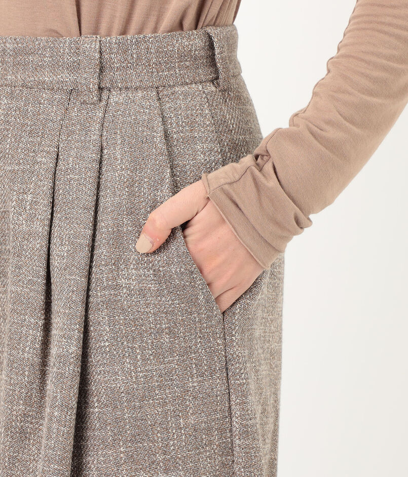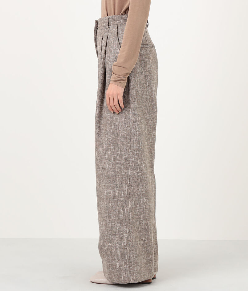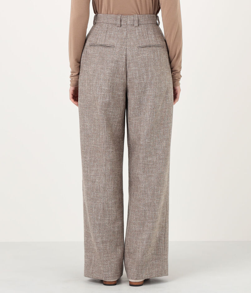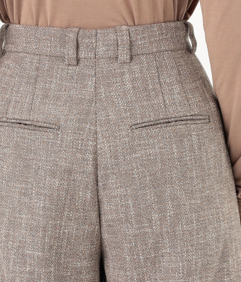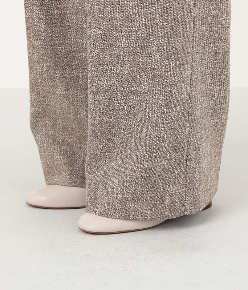 シナモンカラーのメランジがソフトな雰囲気のパンツ。