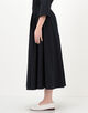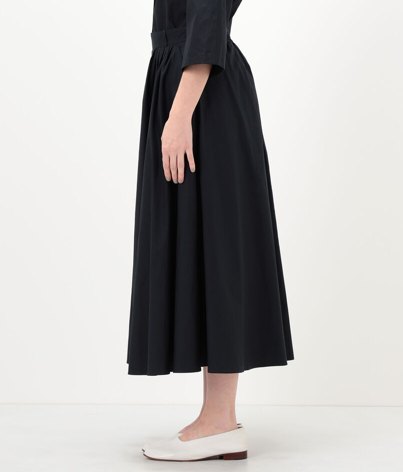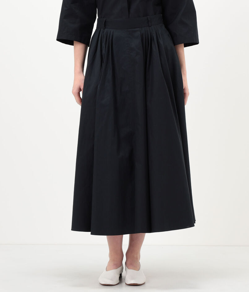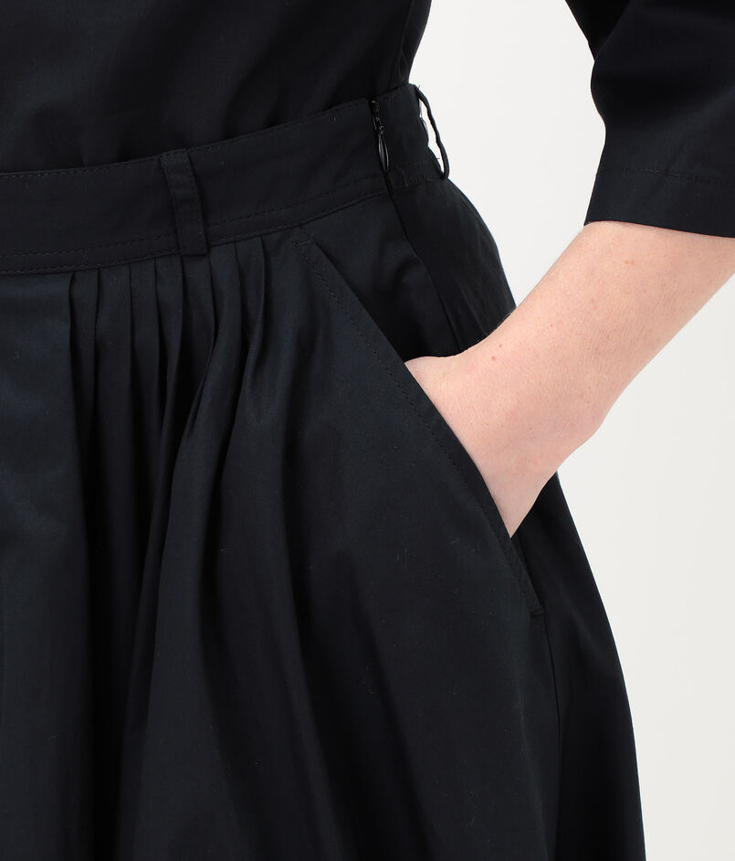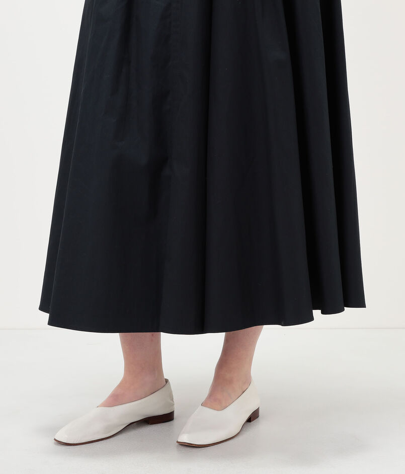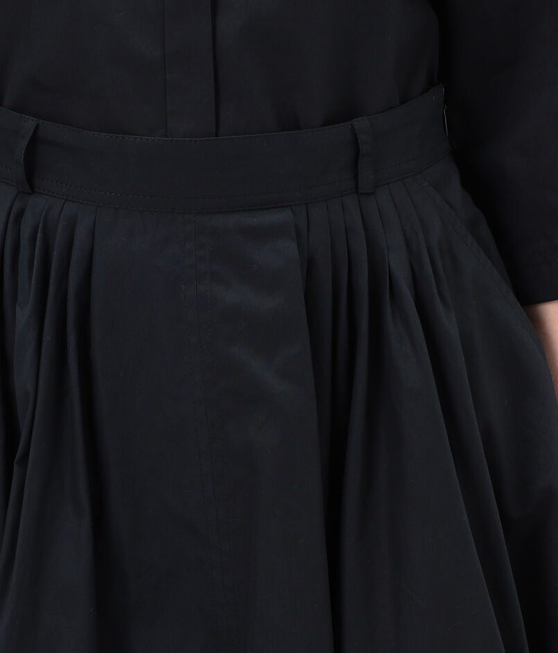 フロントのウエスト部分に施された細かいプリーツが美しいフレアシルエットを生み出しています。