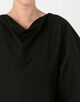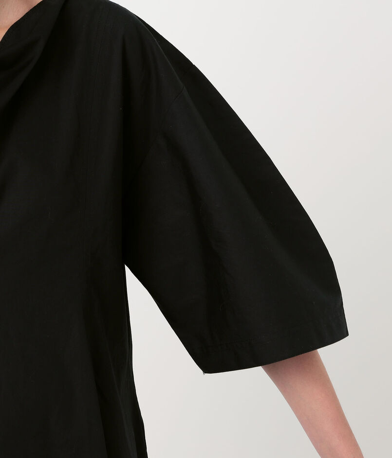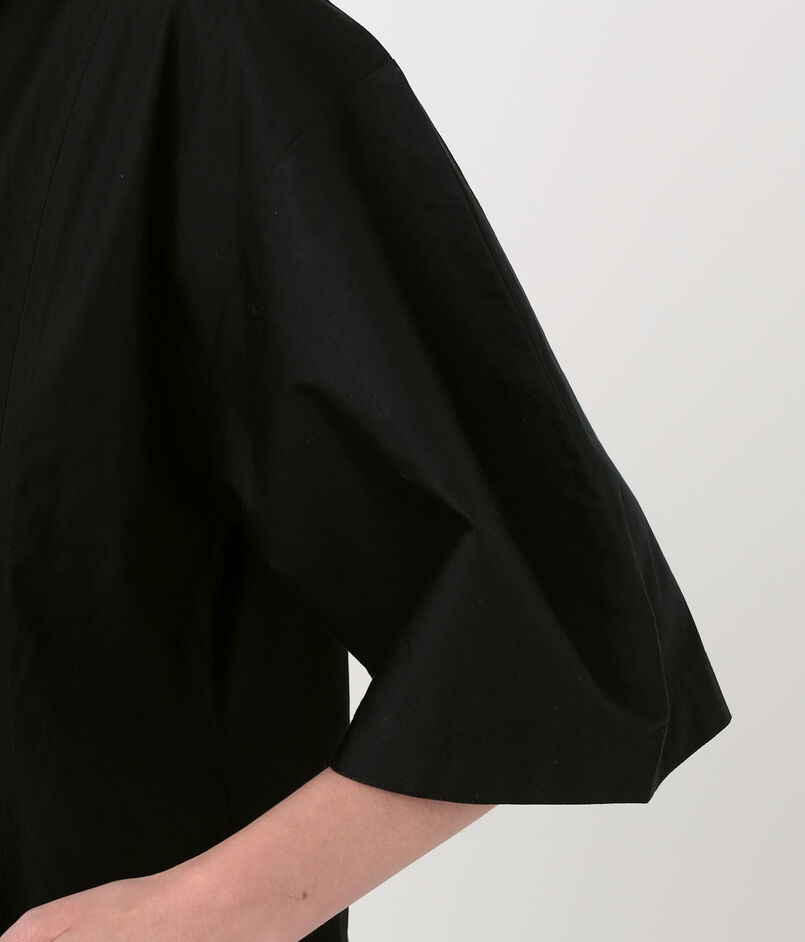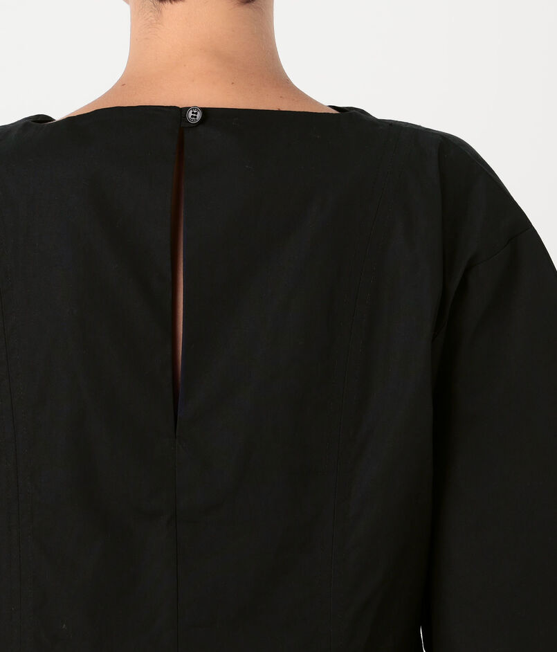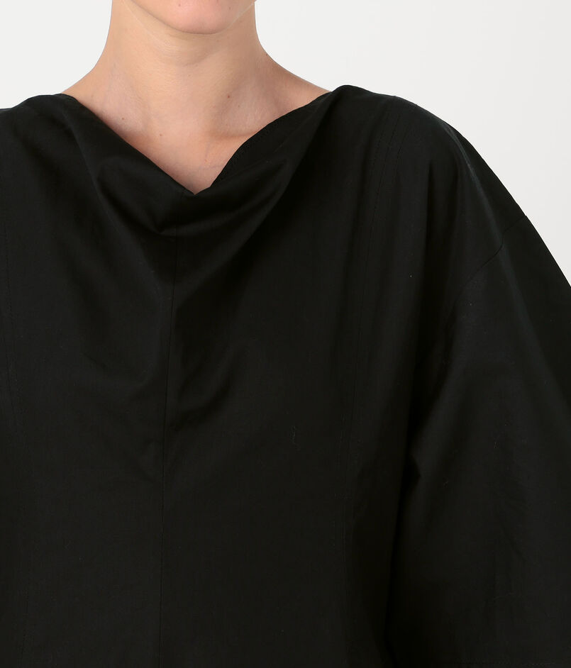 ネックラインはそのままフラットにしたりドレープを作るなど、着こなしによって顔まわりの雰囲気に変化を付けていただけます。