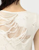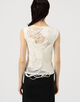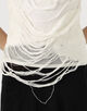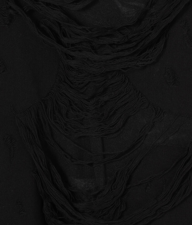 ガーメントやアクセサリーの背面には、白いシングルステッチでラベルが縫い付けられています。
