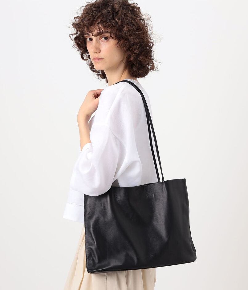 幅広ながらもスリムなシルエットが特徴のトートバッグ。