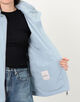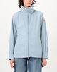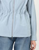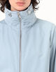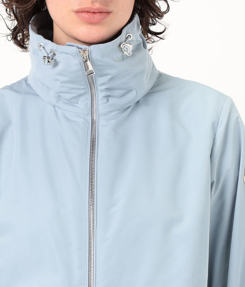 取り外し可能なフードと、シルエットの調整が可能なウエストラインが、女性らしいバランスを演出。
