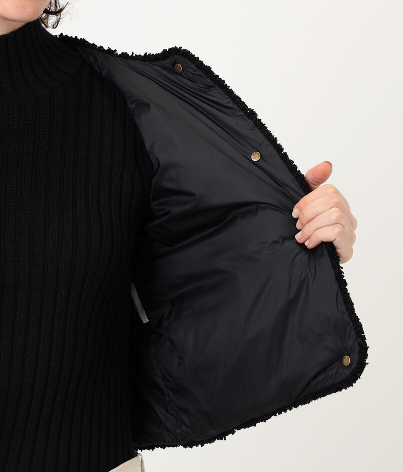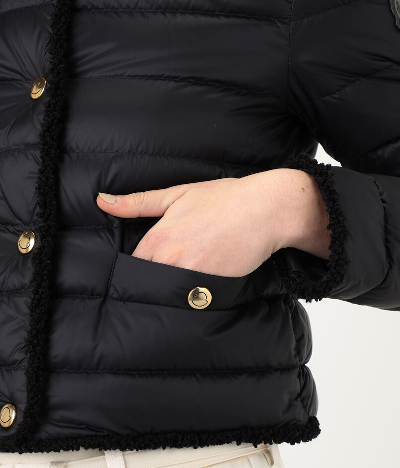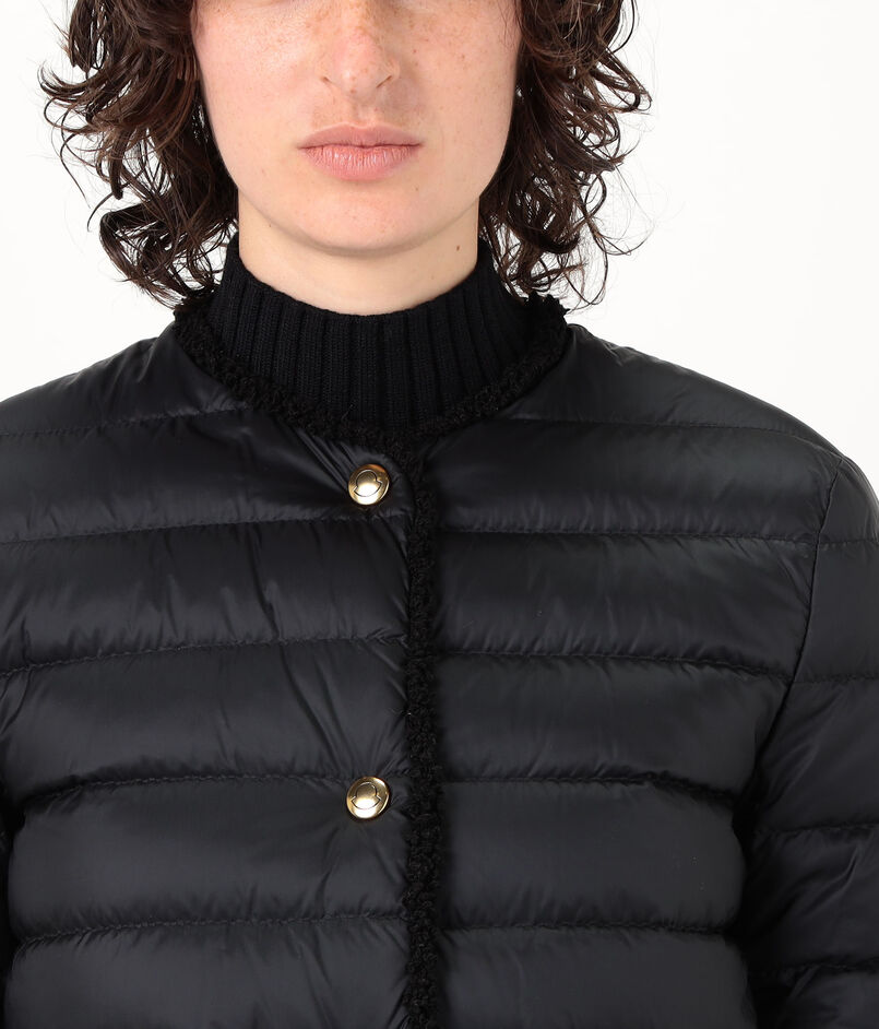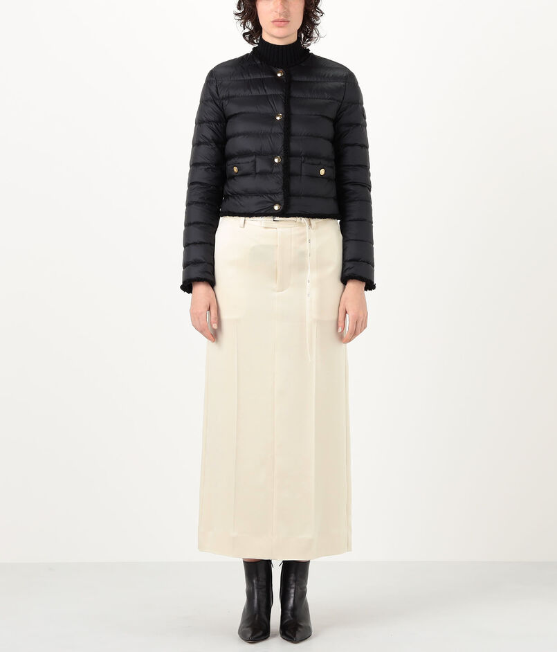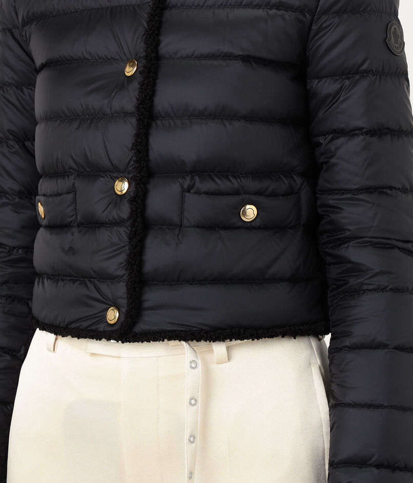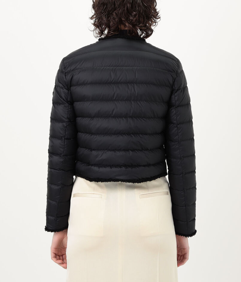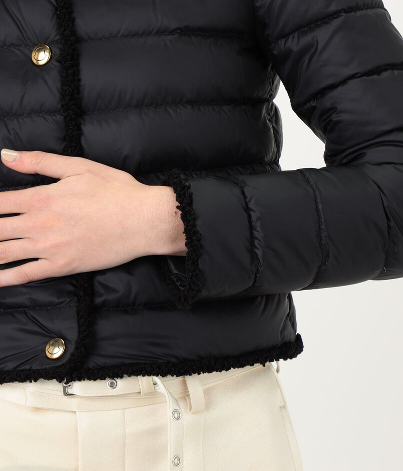 テクスチャーのコントラストと洗練されたラインが際立つ『Fleurs』ショートダウンジャケット。