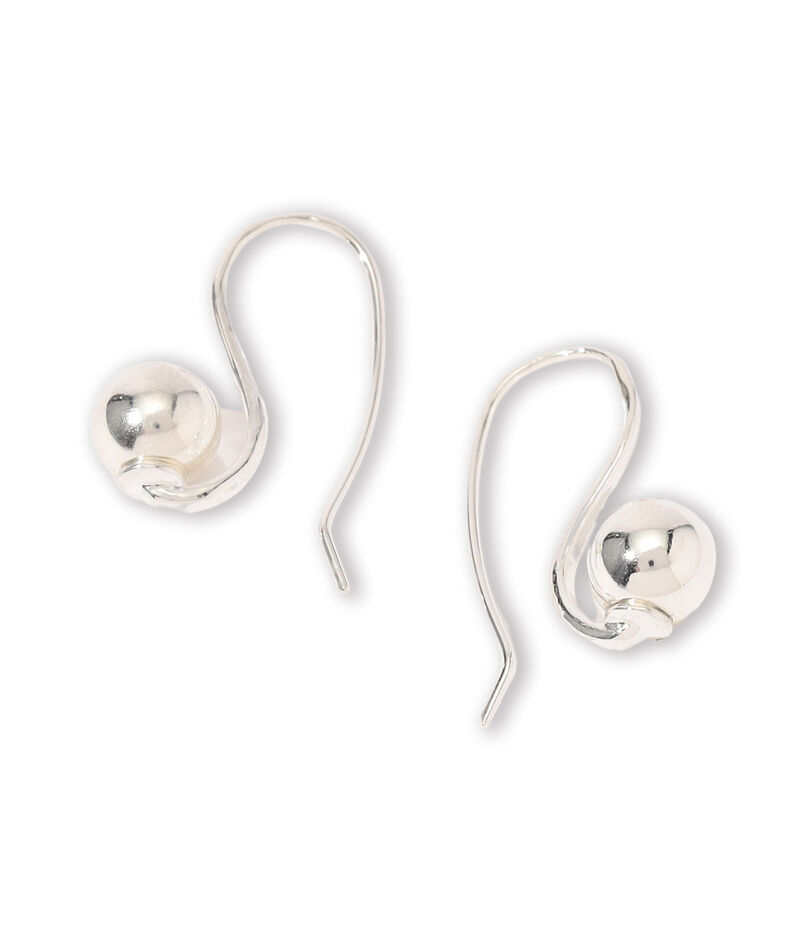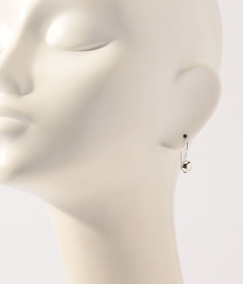 シルバーのボールがきらりと光るフックピアス。