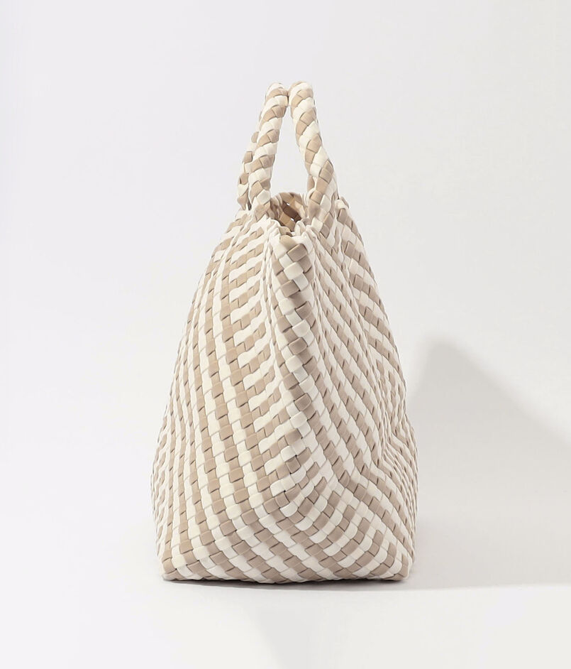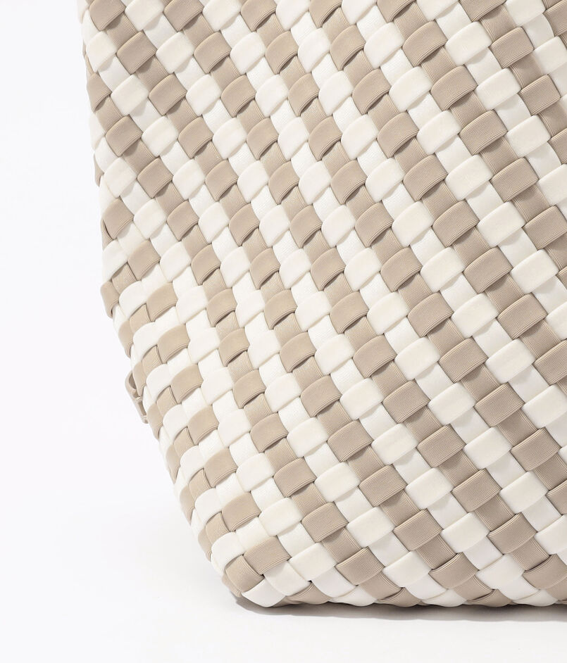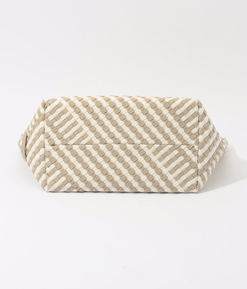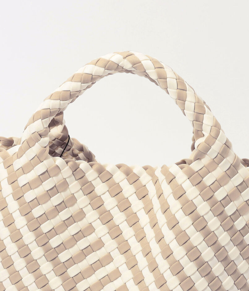 ブランドを象徴するネオプレン素材を丁寧に編み上げた、軽やかなミディアムサイズのトートバッグです。