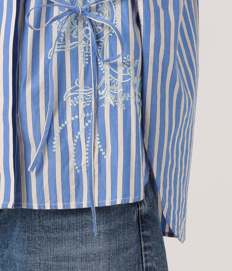 アシンメトリーに施された繊細な刺繍の模様が、装いに表情と奥行きを添えます。