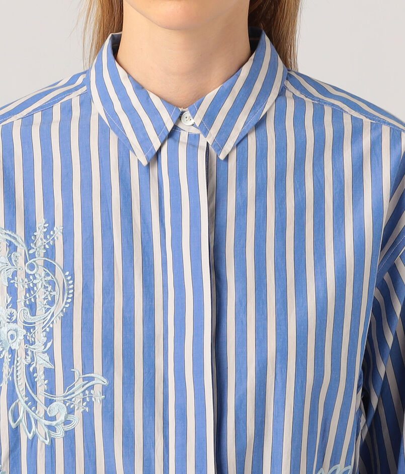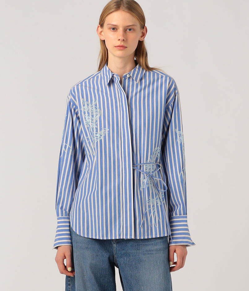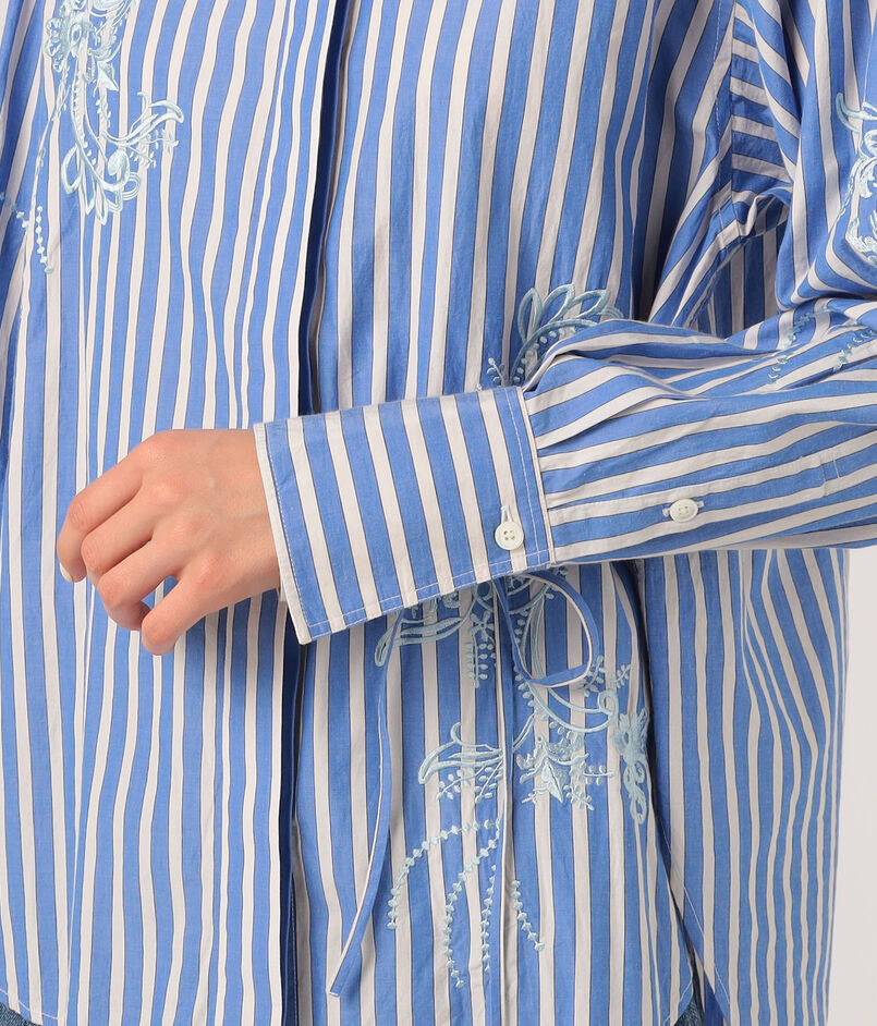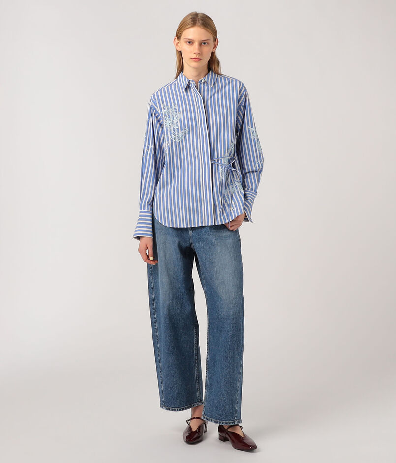 アシンメトリーに施された繊細な刺繍の模様が、装いに表情と奥行きを添えます。