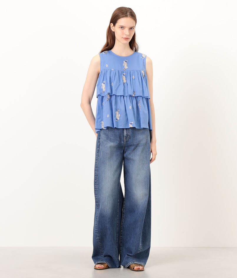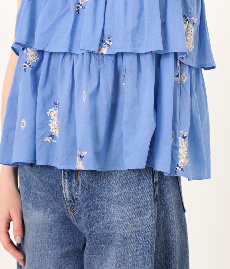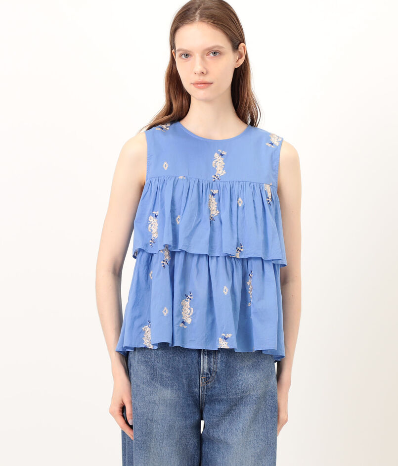 香り立つような艶をまとったジャスミンの花穂の刺繍を施した、柔らかなコットン素材のブラウス。