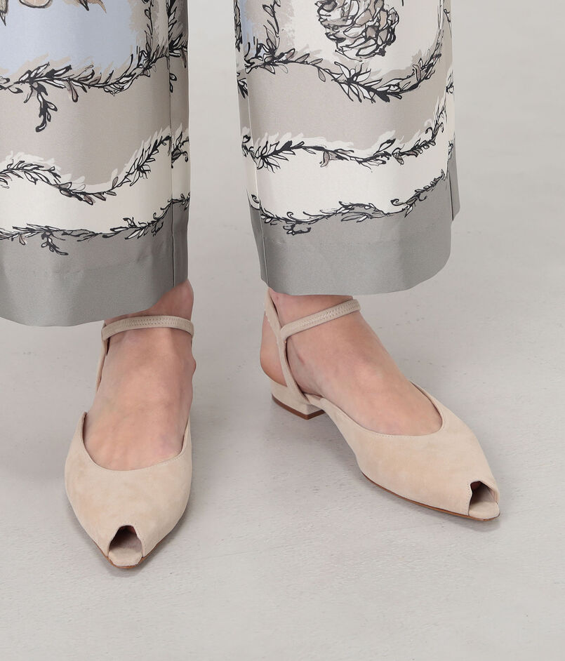 オープントゥのデザインが、軽やかな抜け感を生み出します。