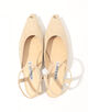 アンクルストラップに施された繊細なトリミングレースが、足元に優美なニュアンスを添えるフラットサンダル。