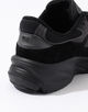 アッパーは従来のミッドフットサドルを廃し、かかとからつま先まで広がるメッシュアンダーレイに、豚皮と合成素材のオーバーレイを流れるように配置されています。