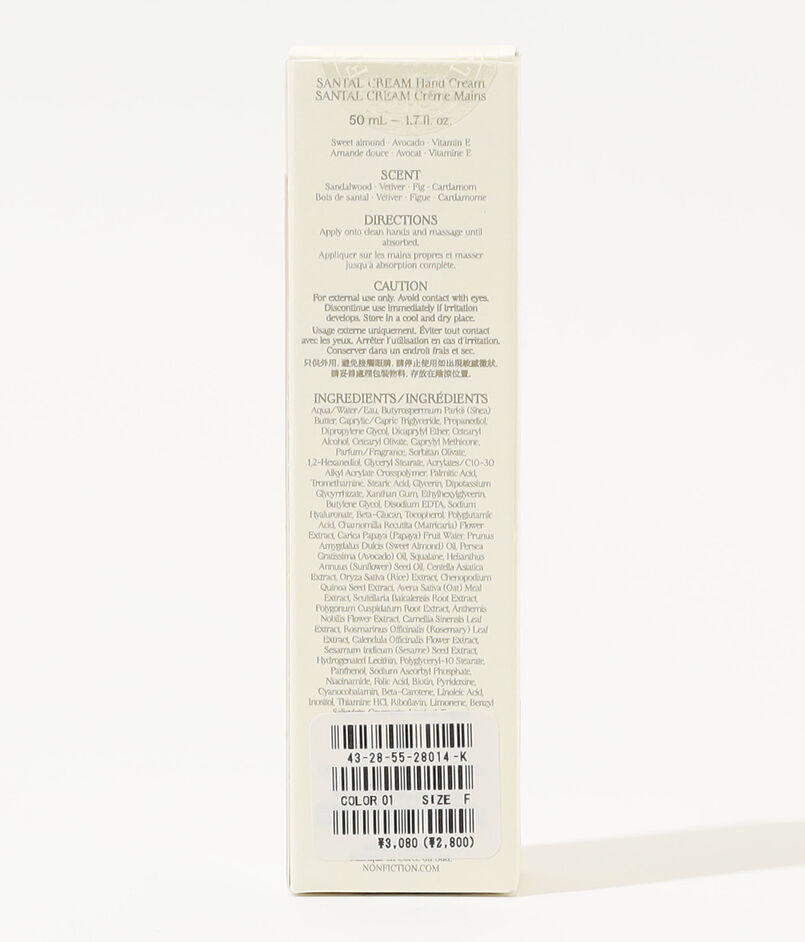 サンタルクリームはノンフィクションを代表する香りで、さっぱりとしたイチジクとやさしいウッディ系の香調が適切なバランスを作り上げます。