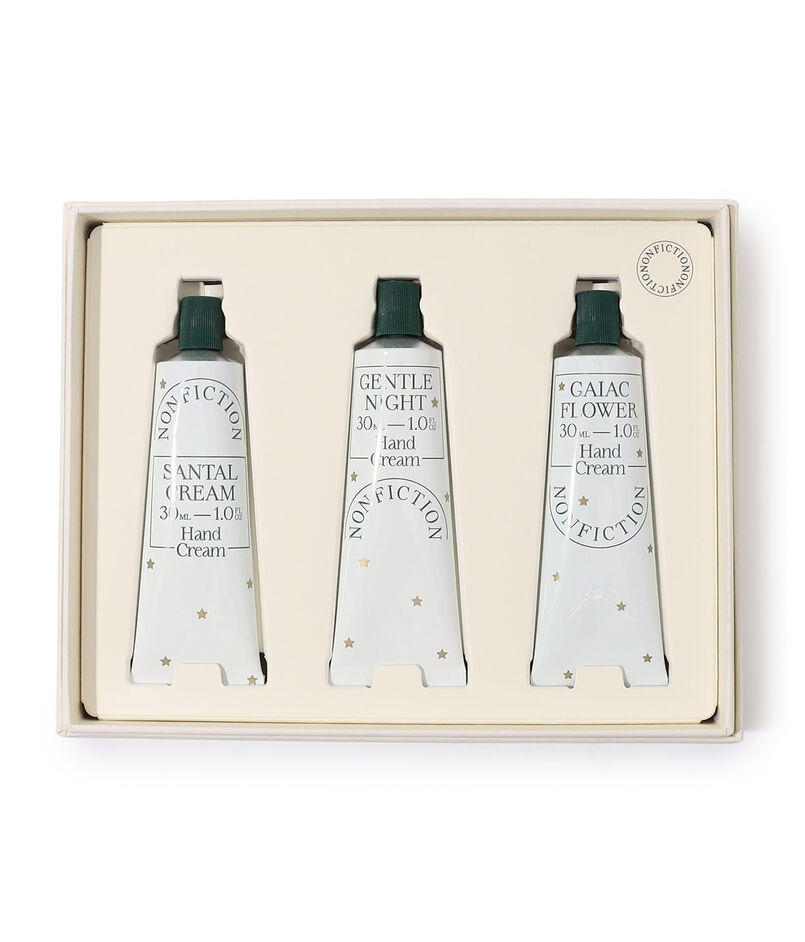 〈NONFICTION〉で最も愛されている3つのベストセラーの香りのハンドクリームミニトリオ。