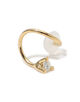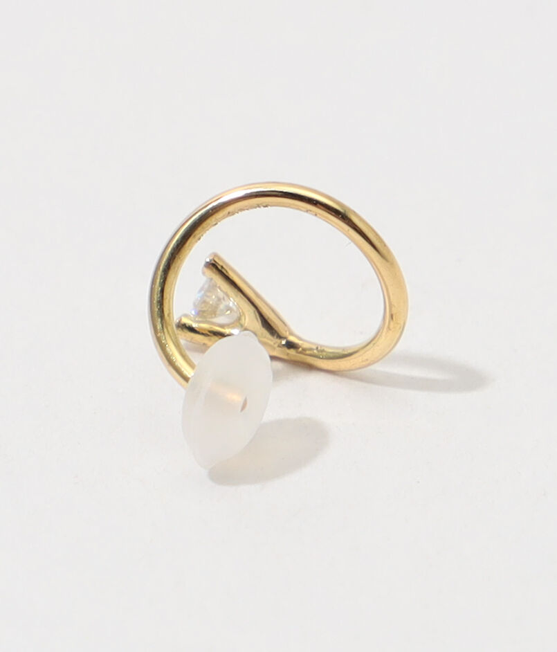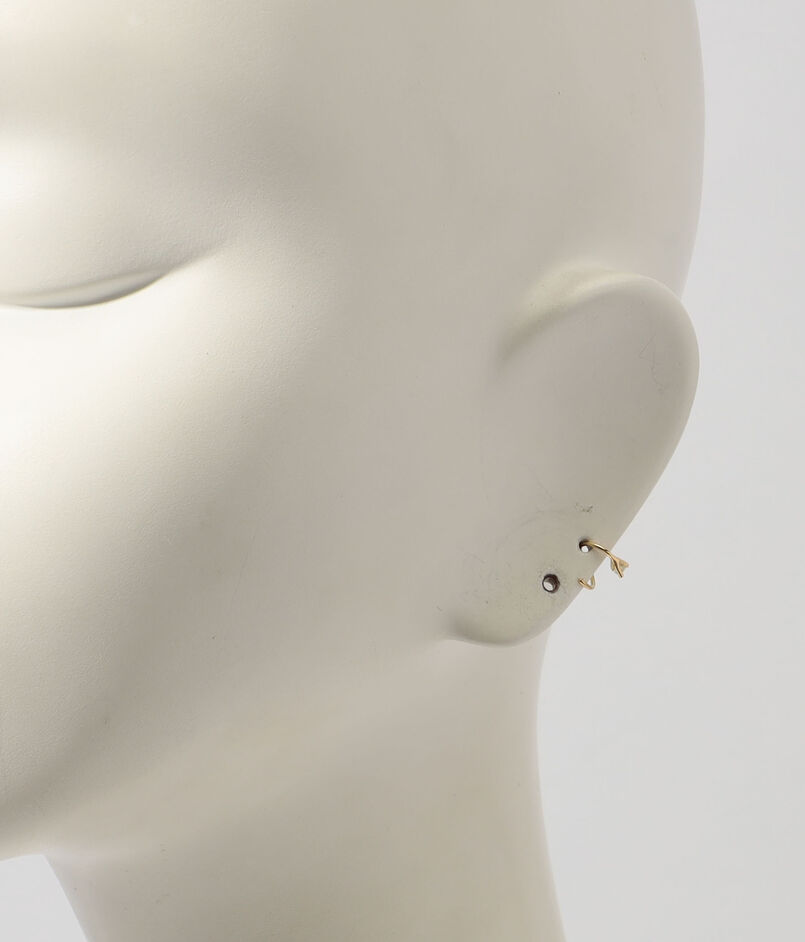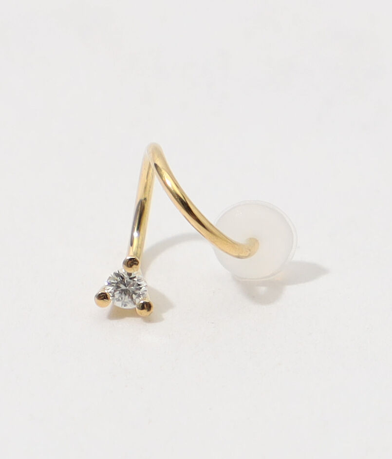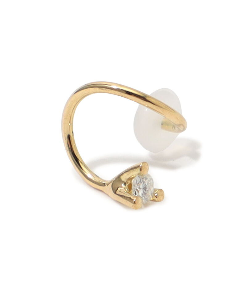 捻りを加えたポストが特徴で、1つのピアスホールでスタッドピアスとフープピアスを同時に着けているかのような、ユニークでモダンな印象を与えます。