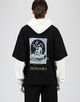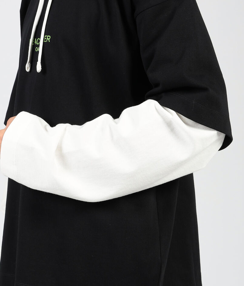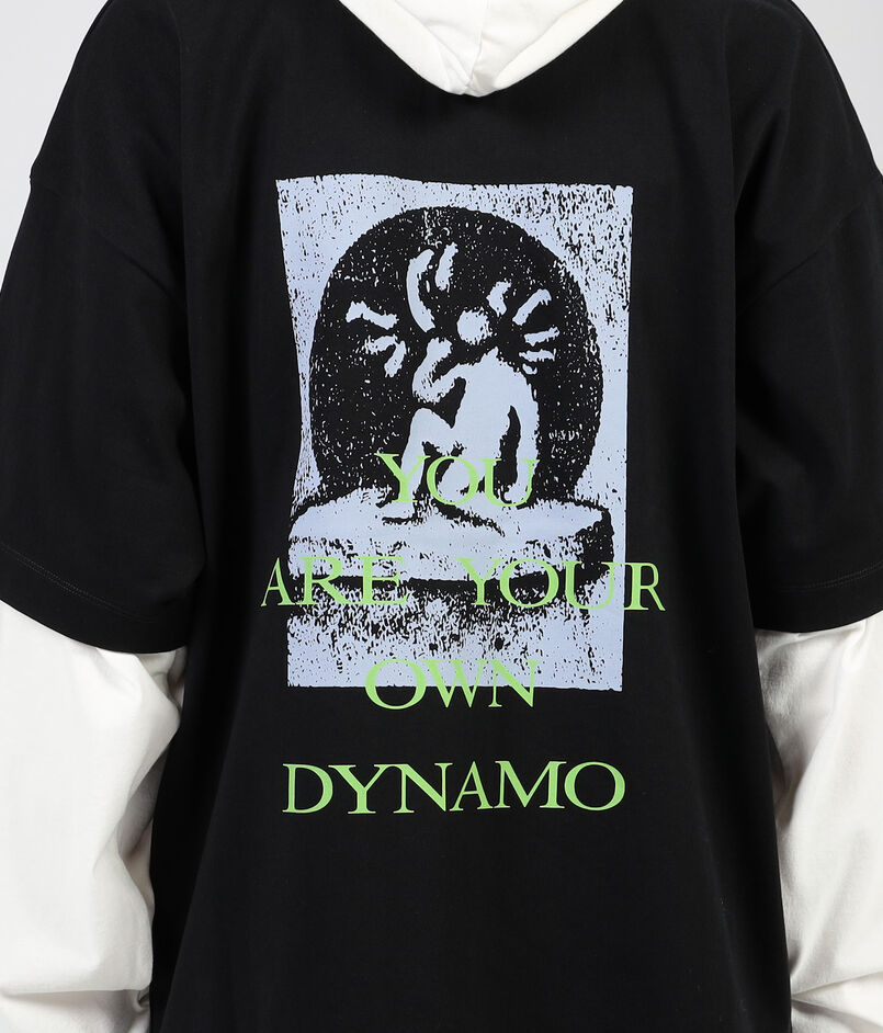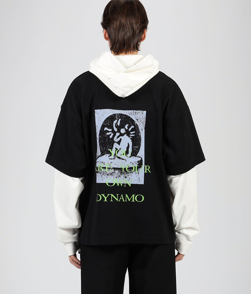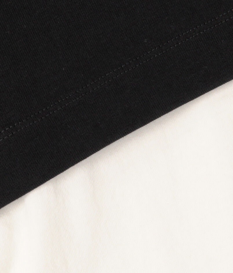 バックスタイルのスクリーンプリントと、添えられたメッセージにブランドの哲学が表現されています。