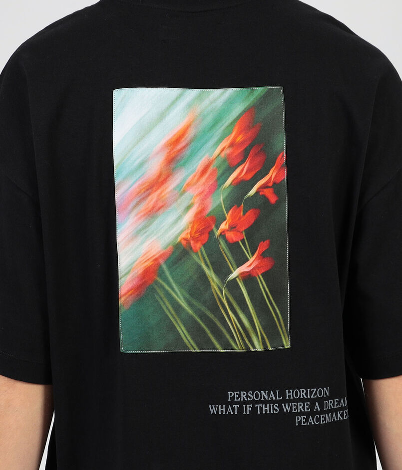 バックスタイルの自然界をモチーフにしたスクリーンプリントと、添えられたメッセージにブランドの哲学が表現されています。