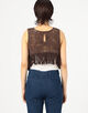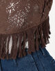 動きに沿って風を受けて揺れる長めのフリンジが、表情豊かなスタイリングを演出します。