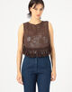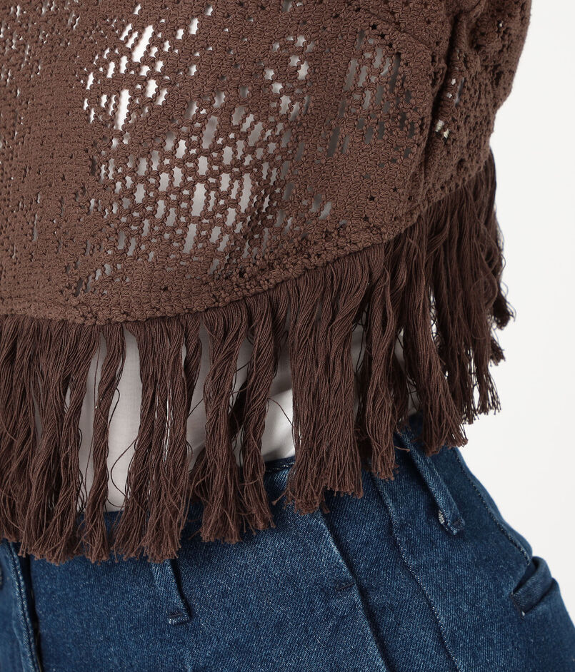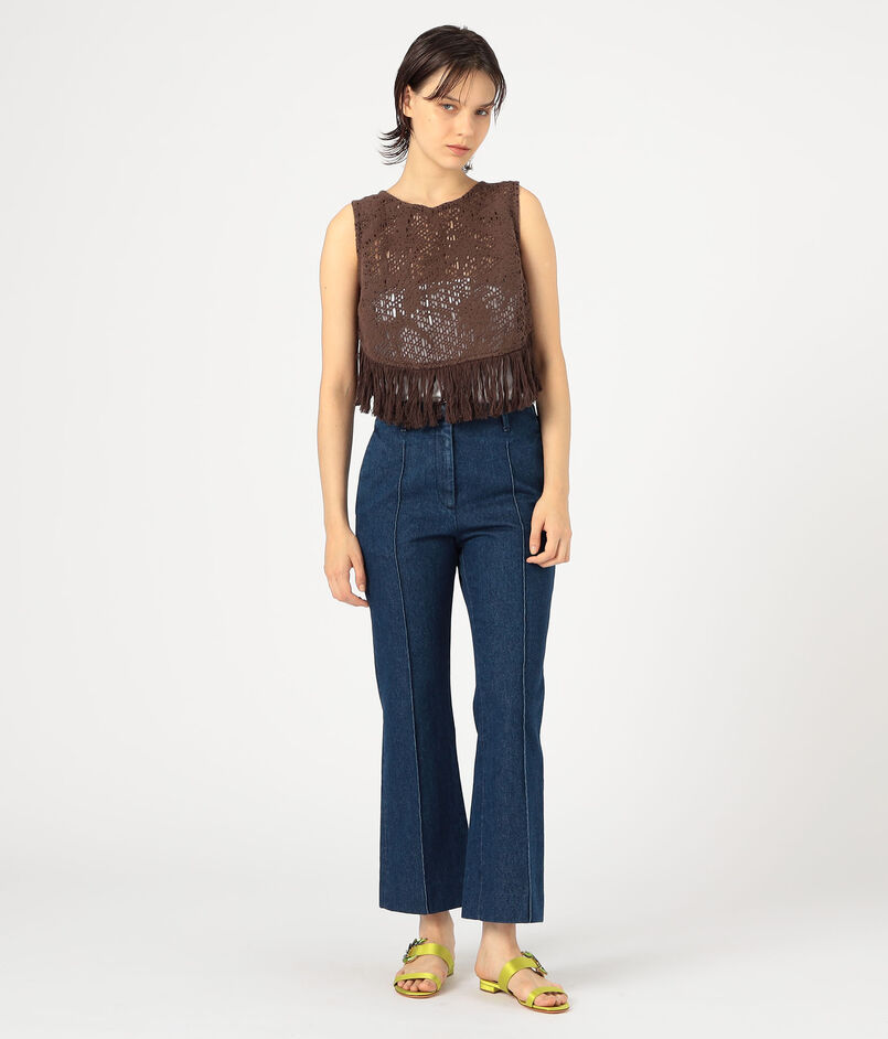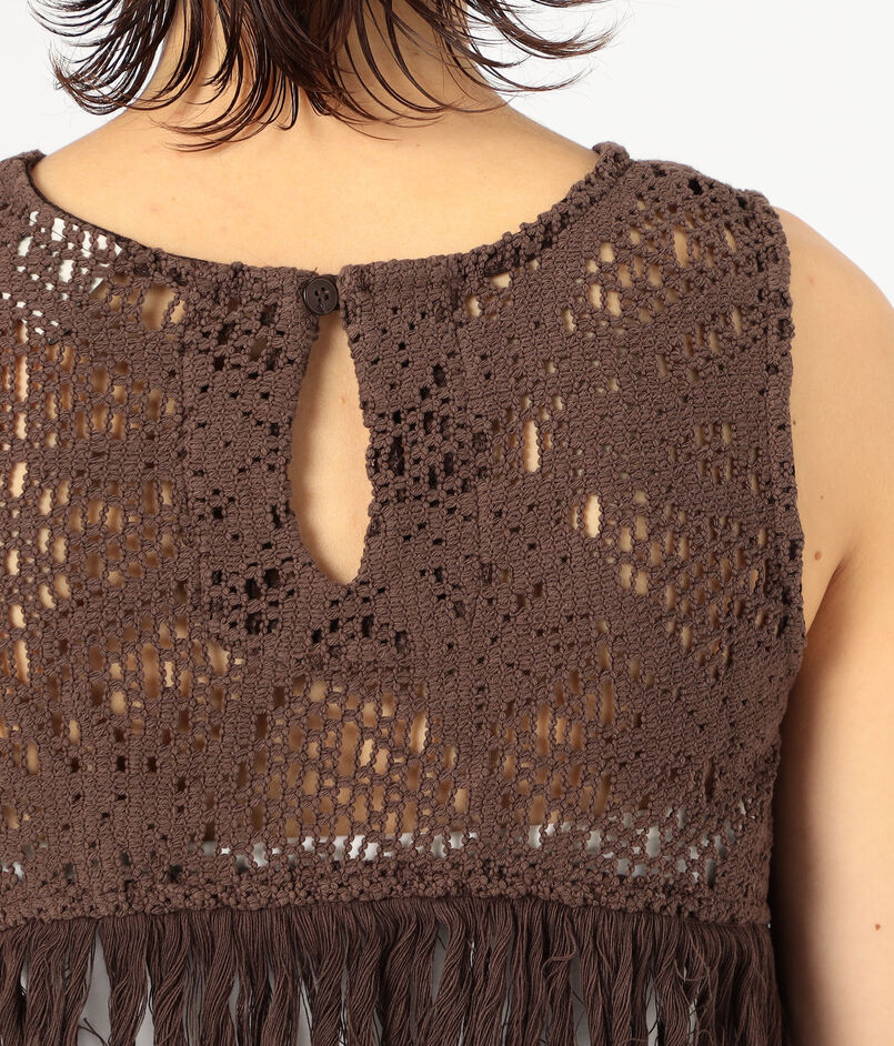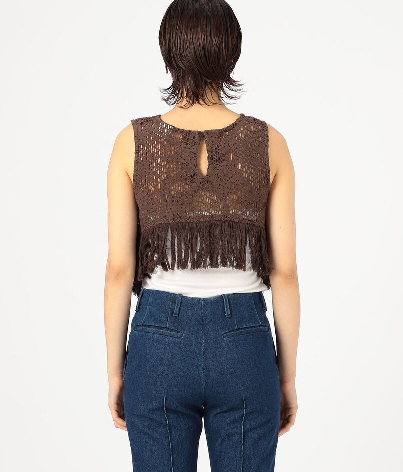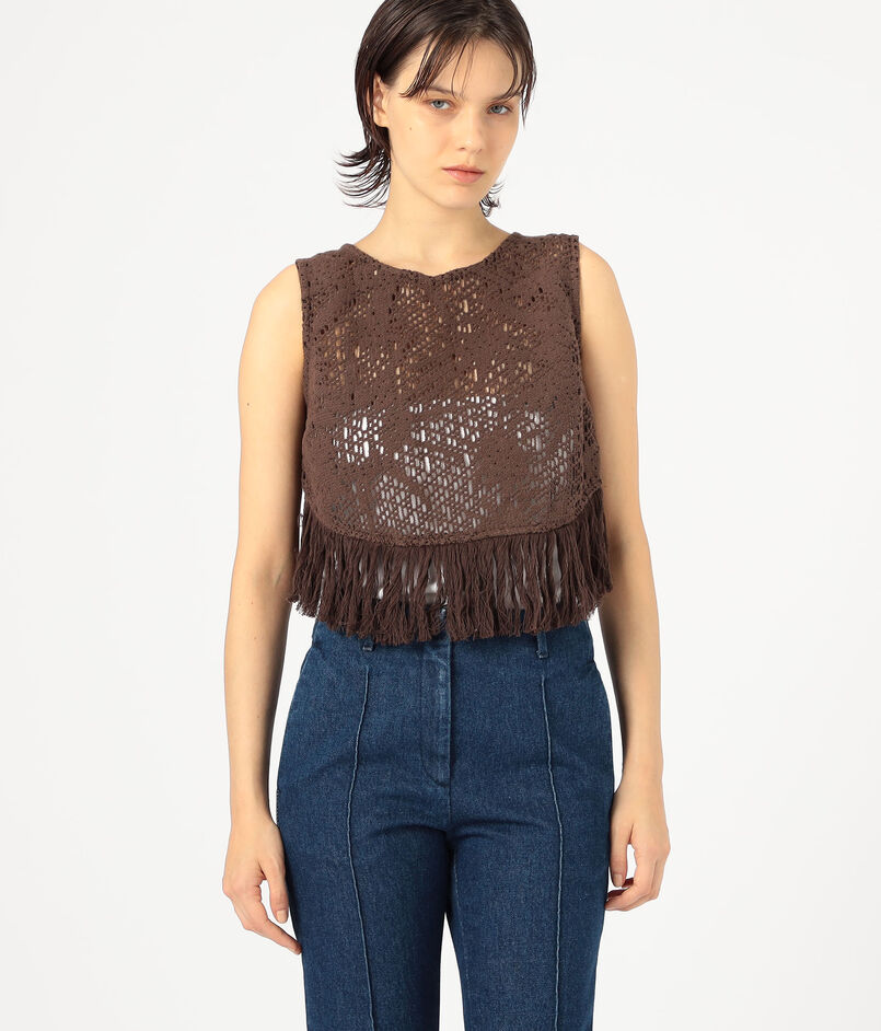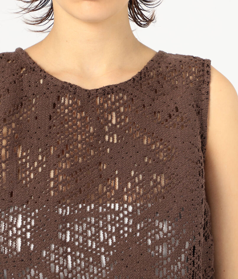 燃える太陽のような透かし柄が、ブランドのムード溢れるクロシェトップス。