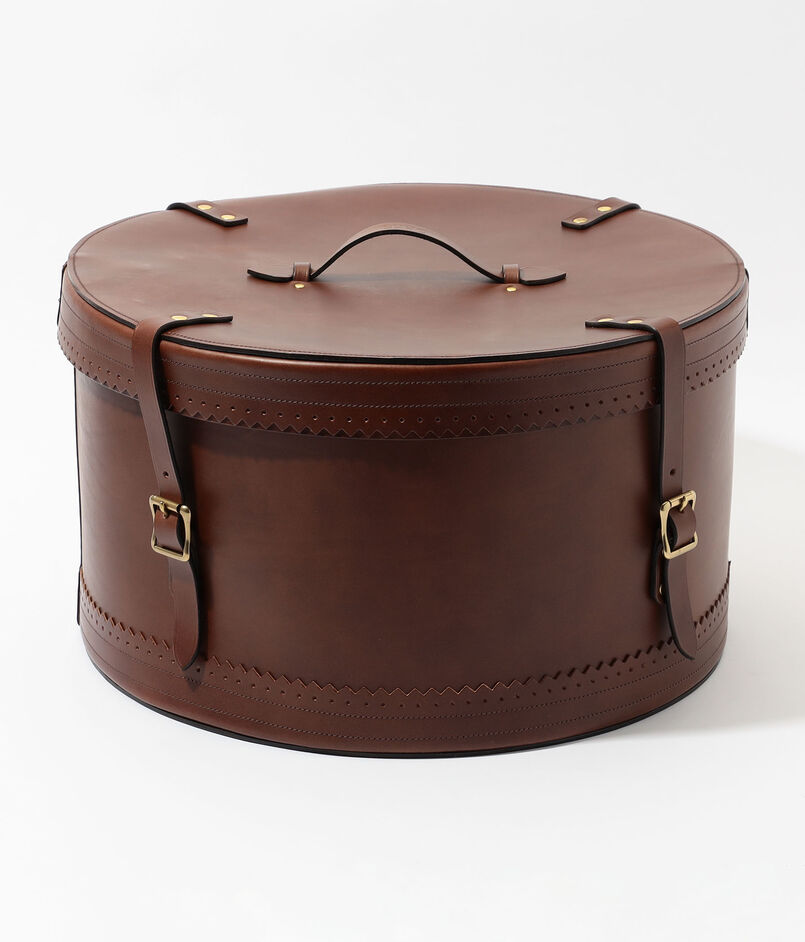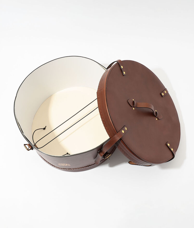 同ブランドで展開するエクアドル産のパナマハットを格納するレザーボックスです。